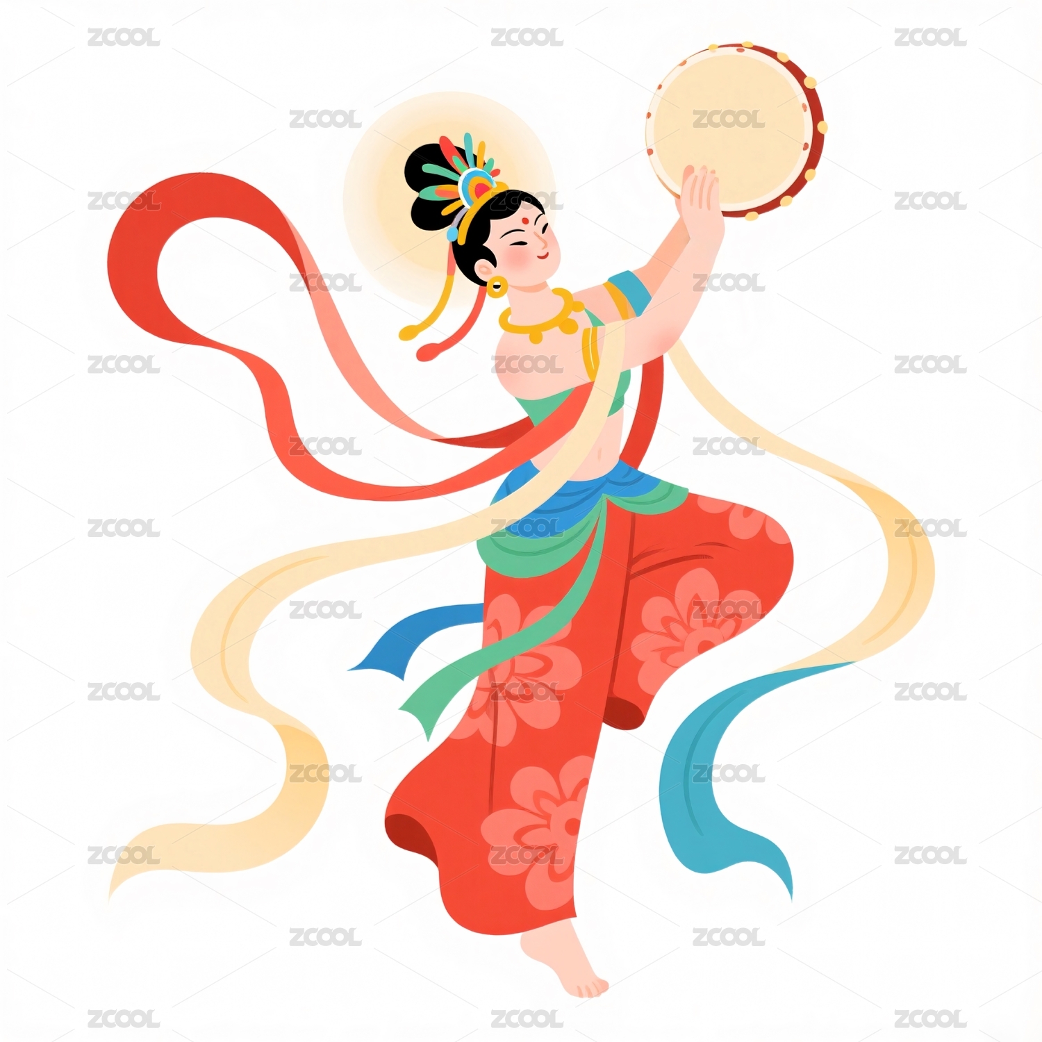 敦煌风飞天插画