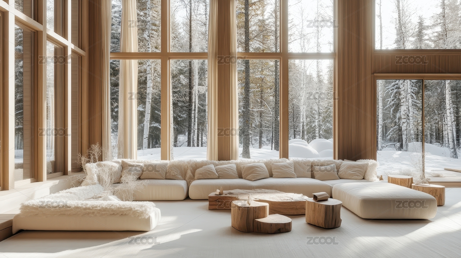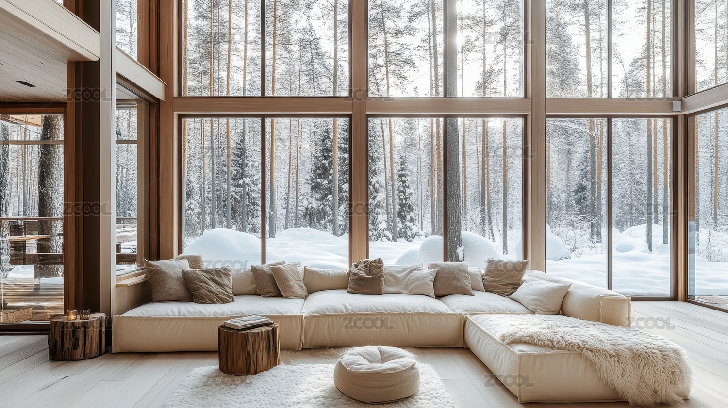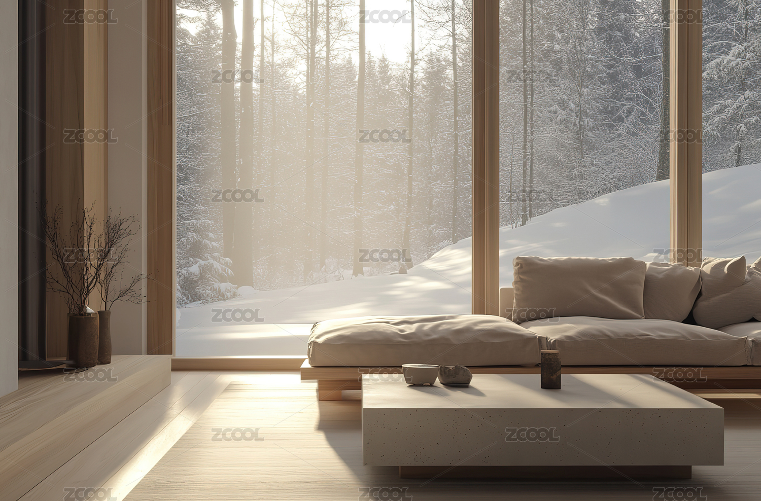 室内,房间,床,温馨,舒适,落地,窗户,树木,雪,立冬