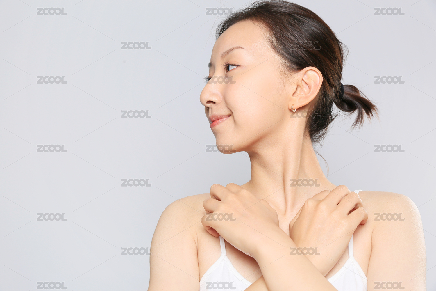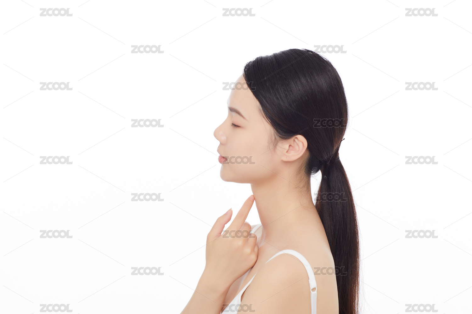 闭上眼睛美丽亚洲女性拥有光滑的皮肤