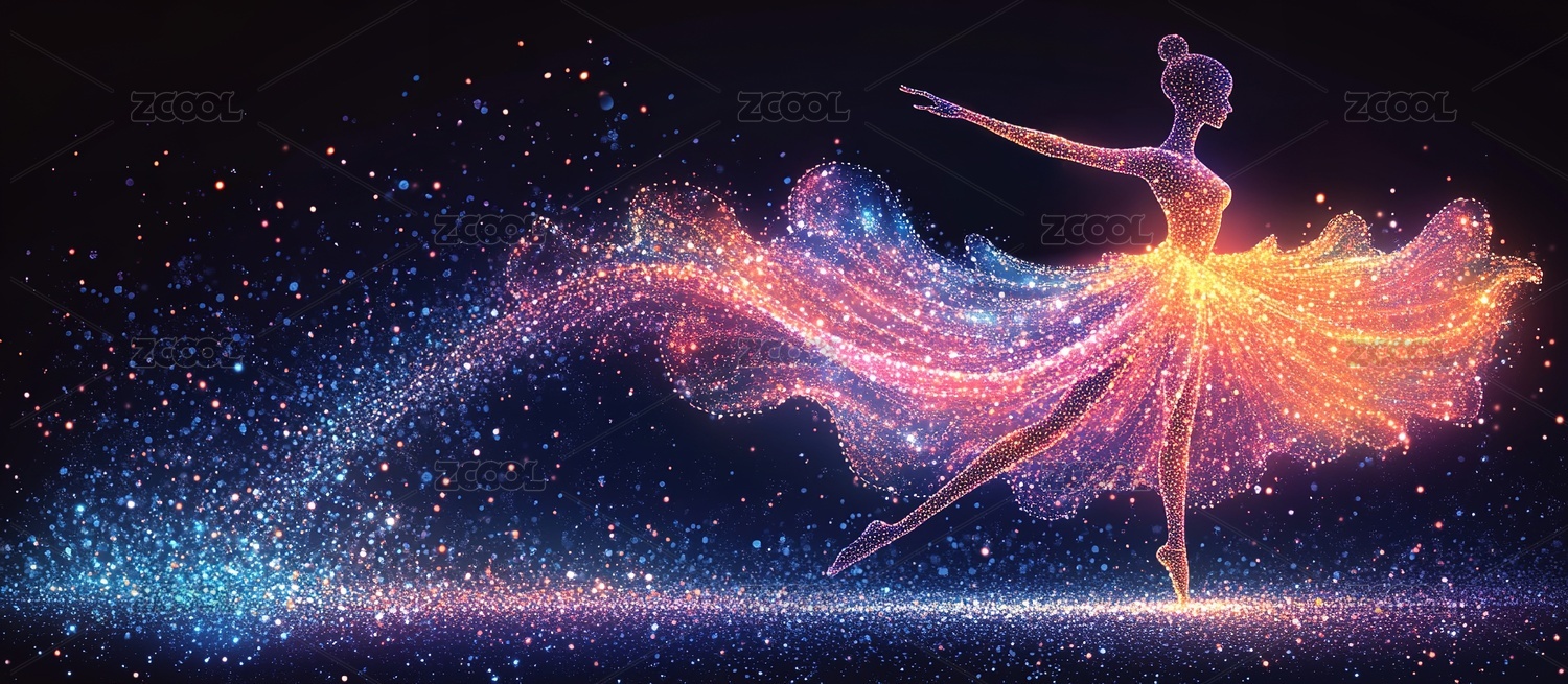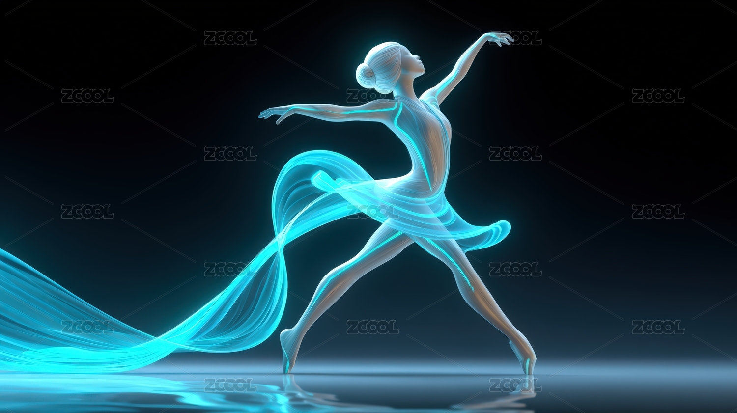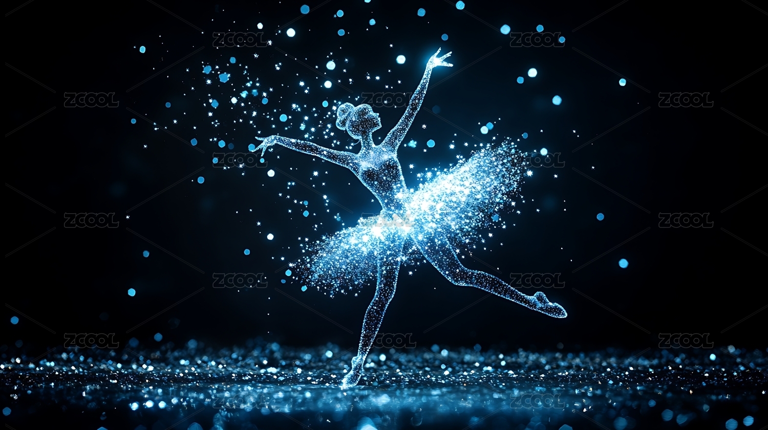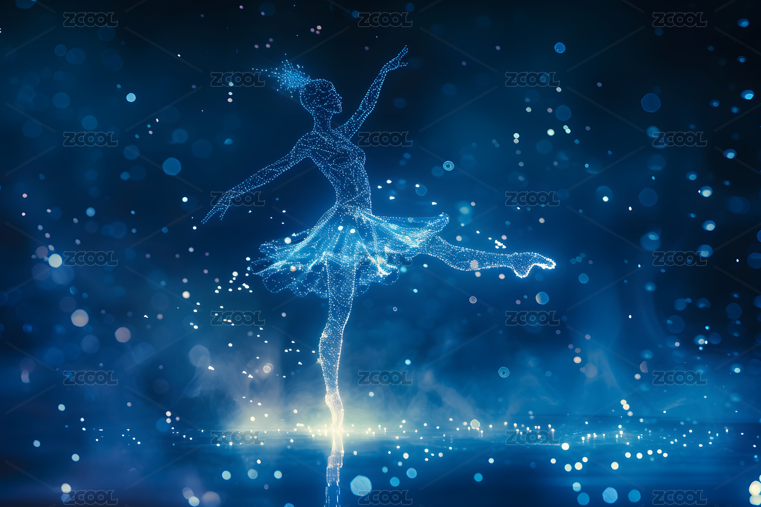 蓝色梦幻数字成像舞蹈家正在跳芭蕾舞