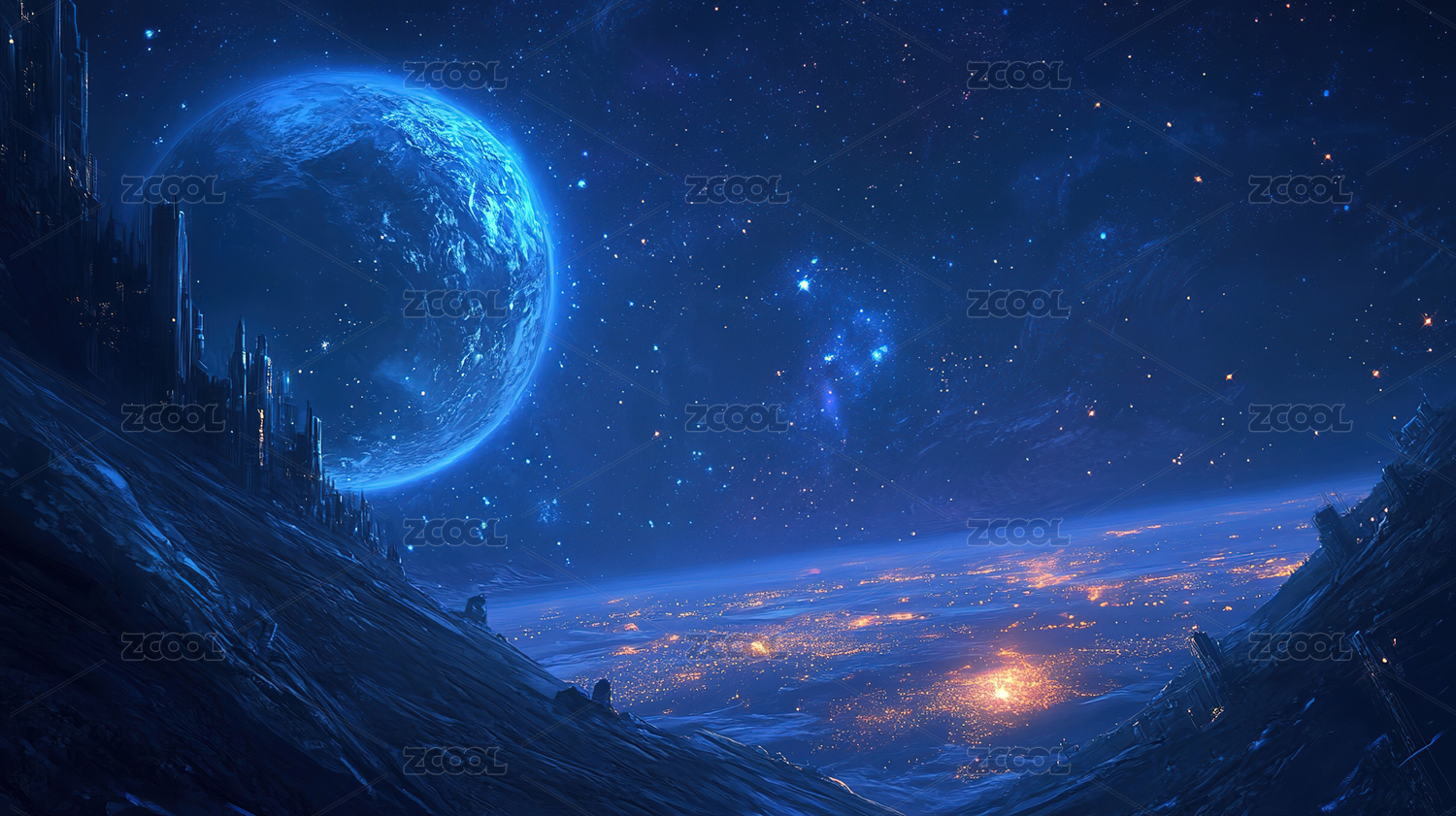太空,宇宙,星球,地表,插画,科幻,宏伟,山,行星,地形