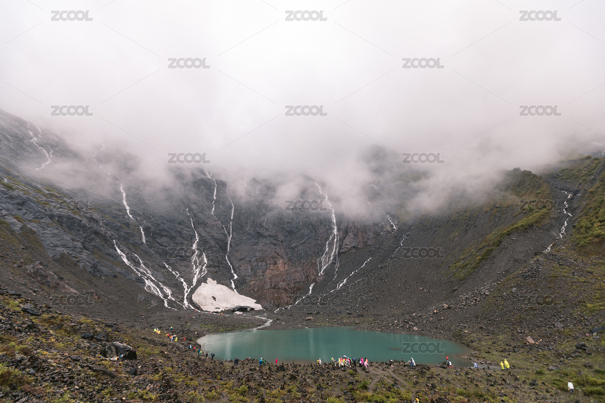 中国云南迪庆德钦县雨崩冰湖神瀑梅里雪山云雾缭绕