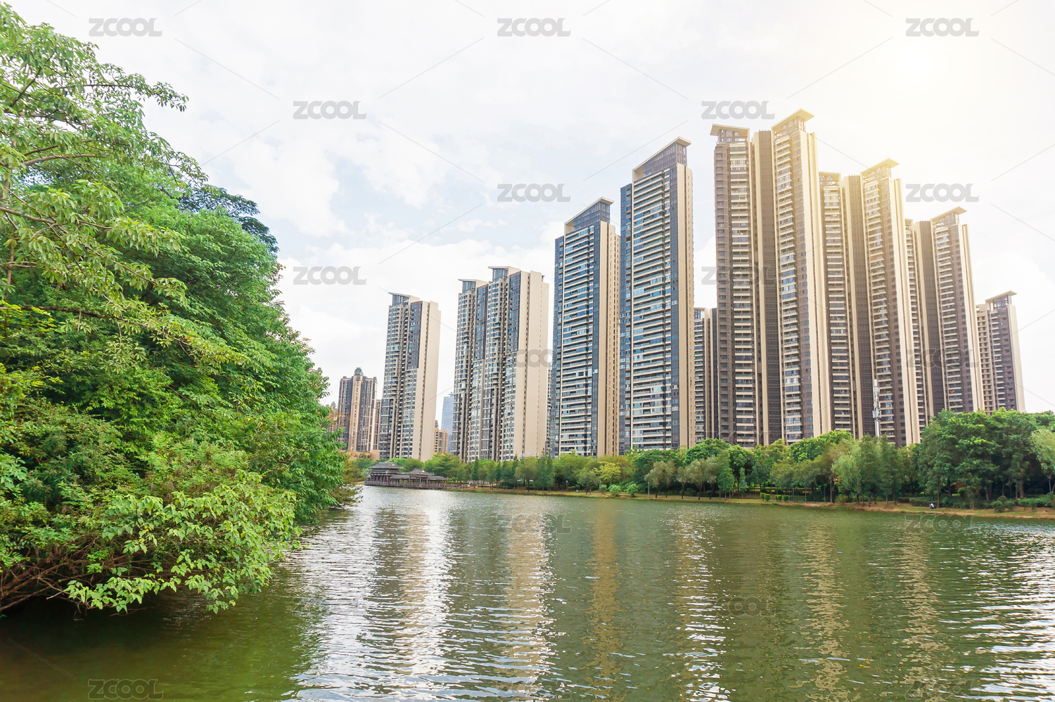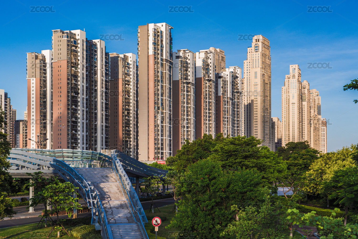 现代城市住宅楼与公园绿地