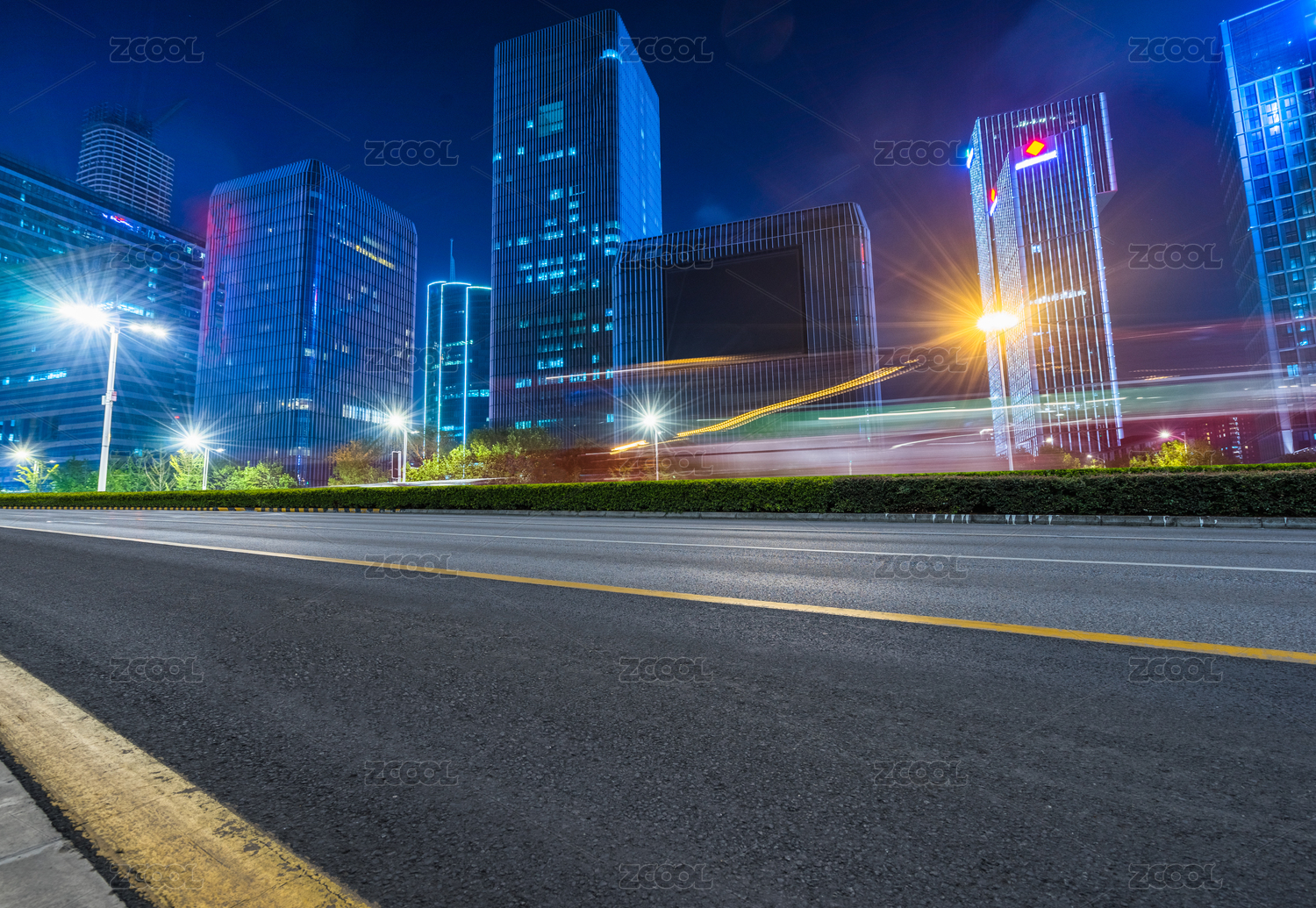 深圳现代建筑夜景和城市街道车流光影轨迹