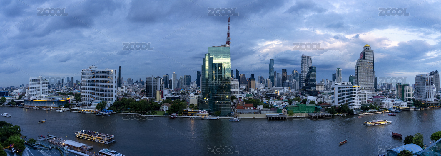 泰国曼谷湄南河畔城市高楼建筑风景