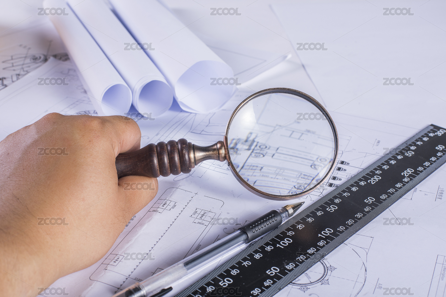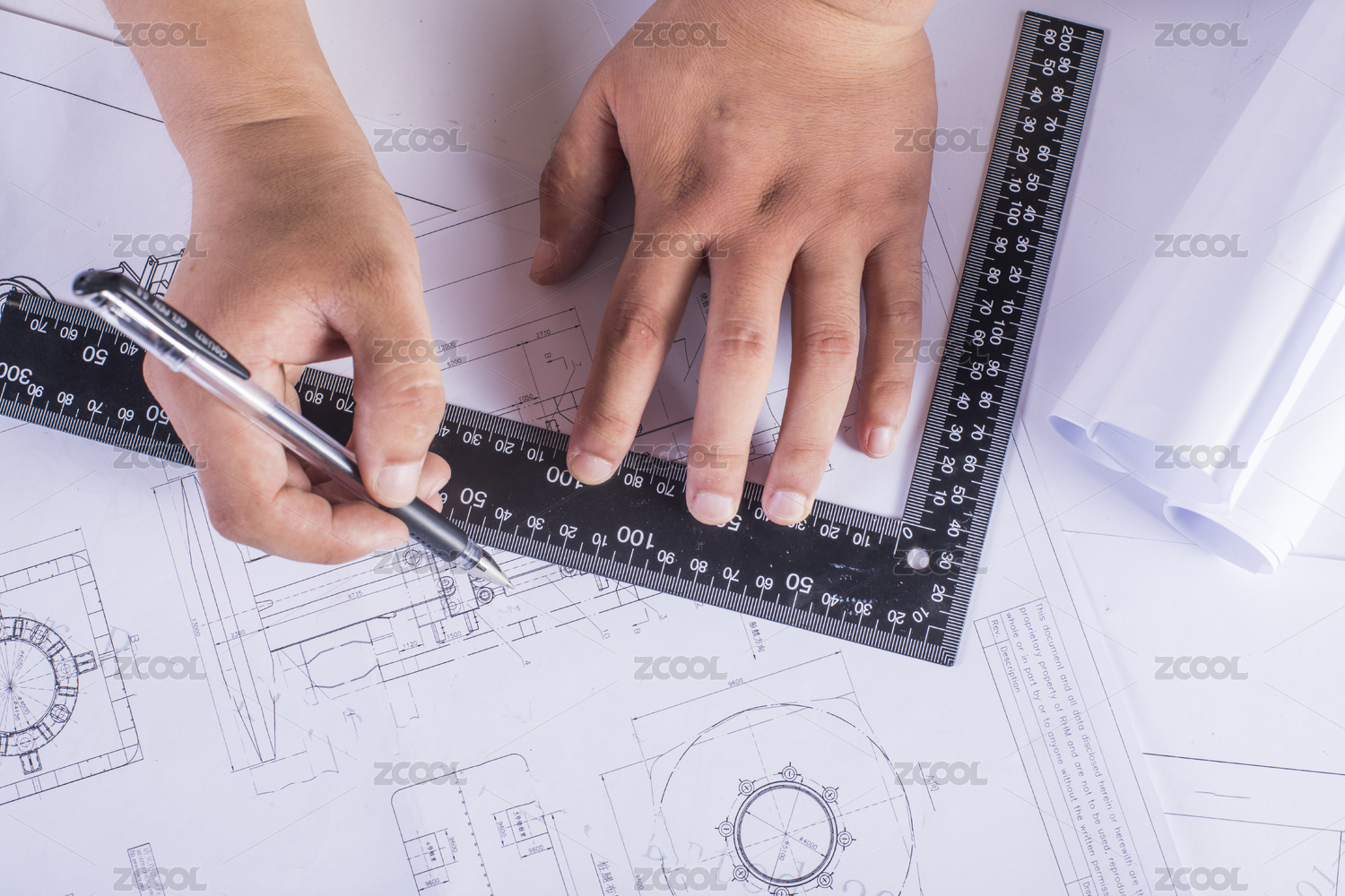 设计师利用工具绘制图纸