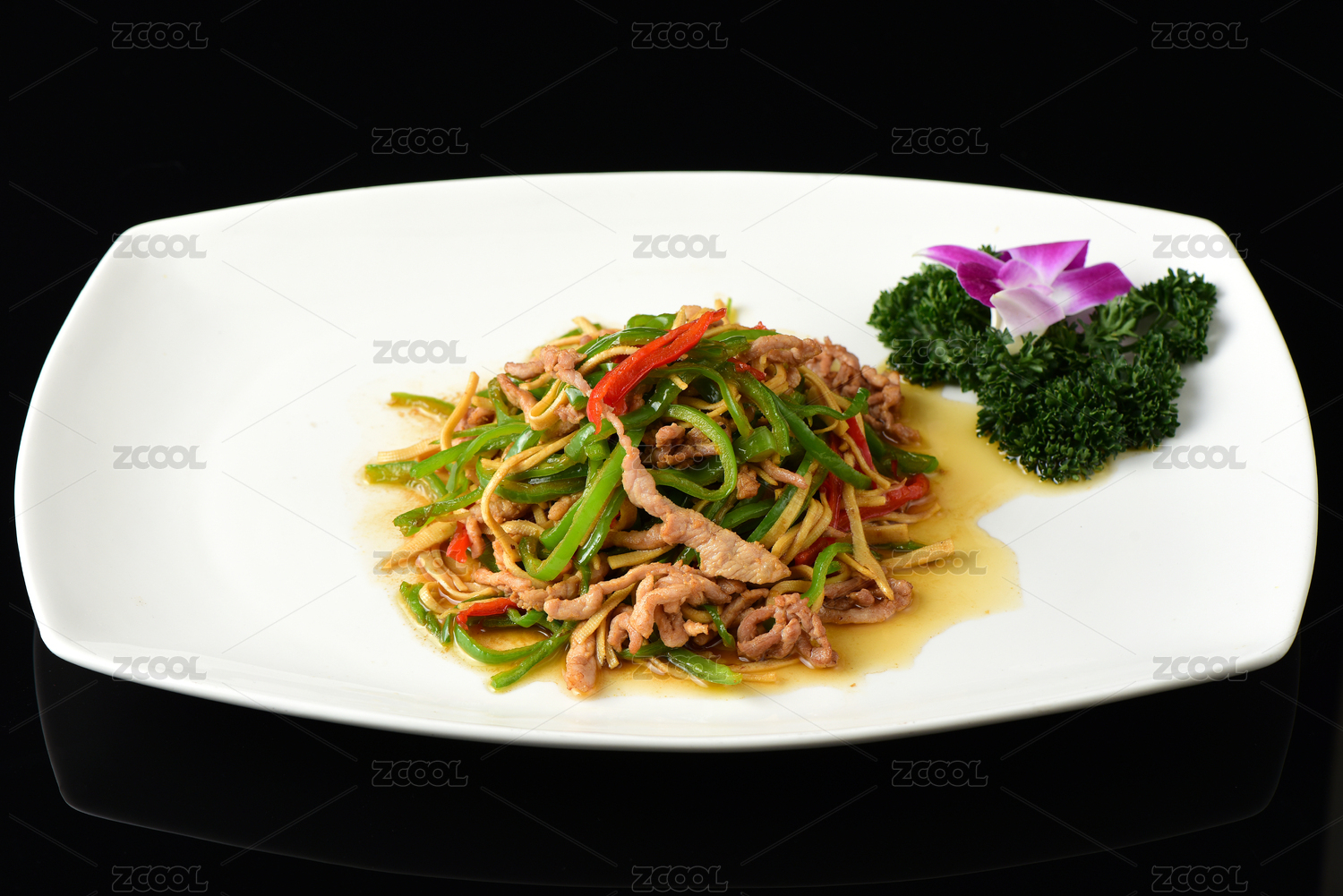 盘子里的爆炒牛肉青菜炒肉片小炒肉