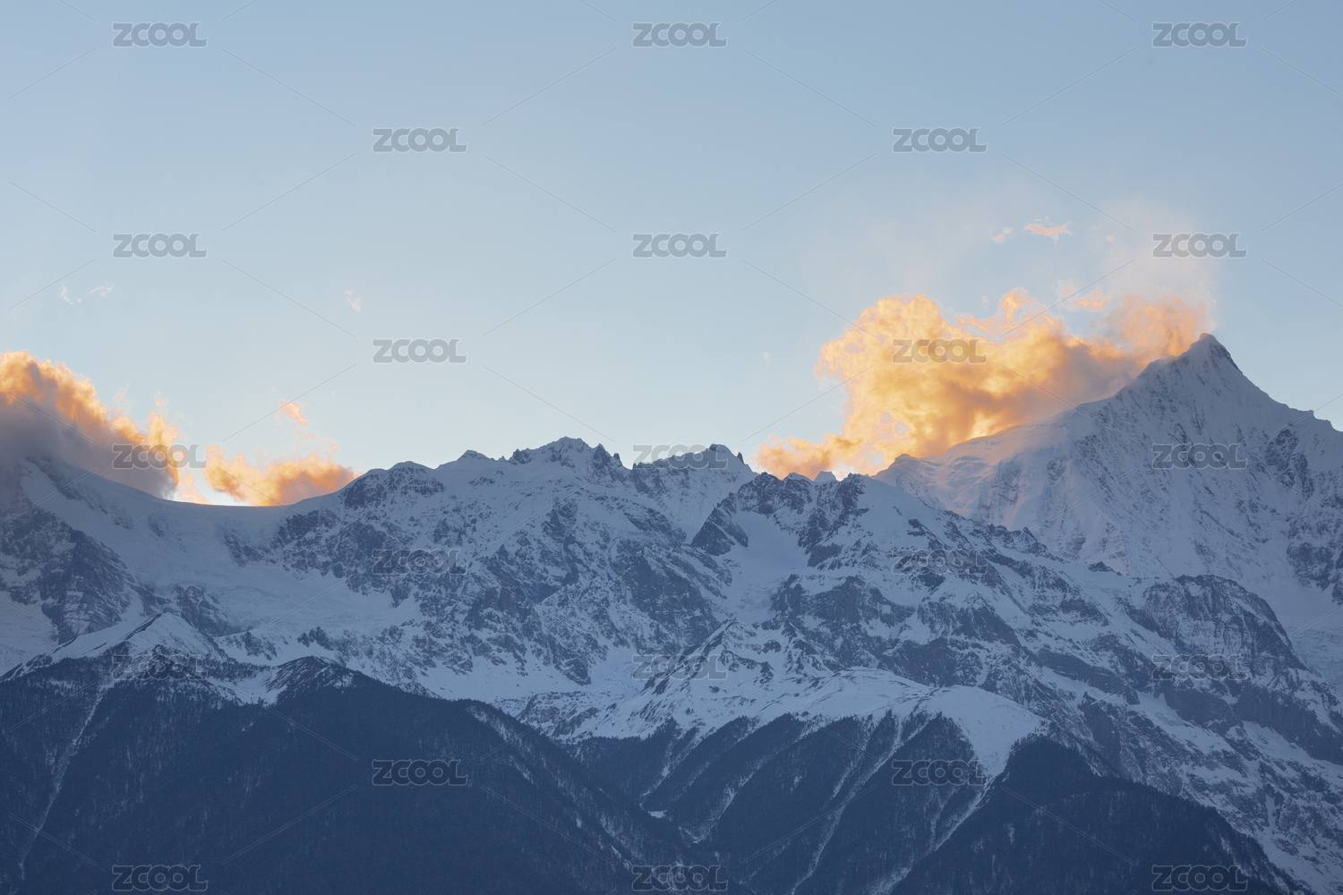 中国云南香格里拉德钦梅里雪山蓝天白云