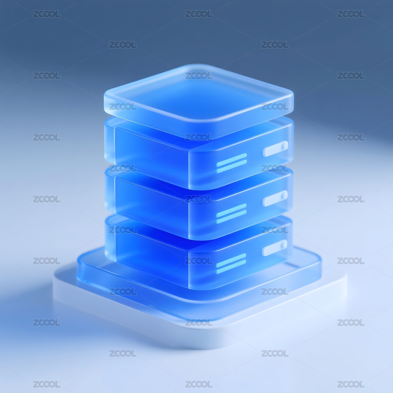 服务器,等距图标,蓝色,半透明,磨砂玻璃,数据湖可视化,工业设计,科技感,3D,风格