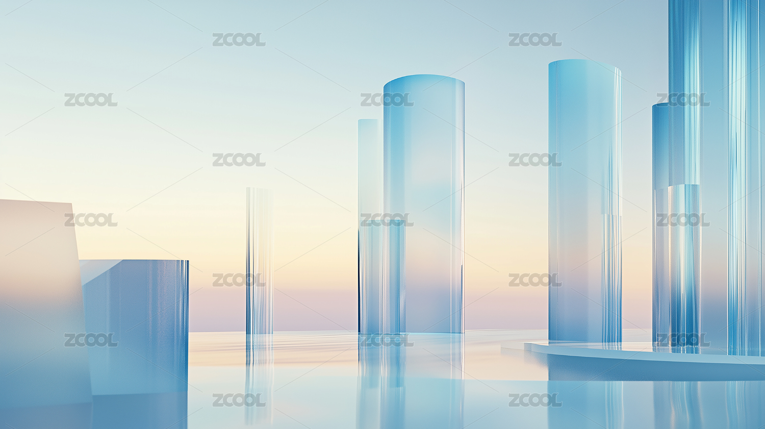 抽象冰块坐落在平静的水面上
