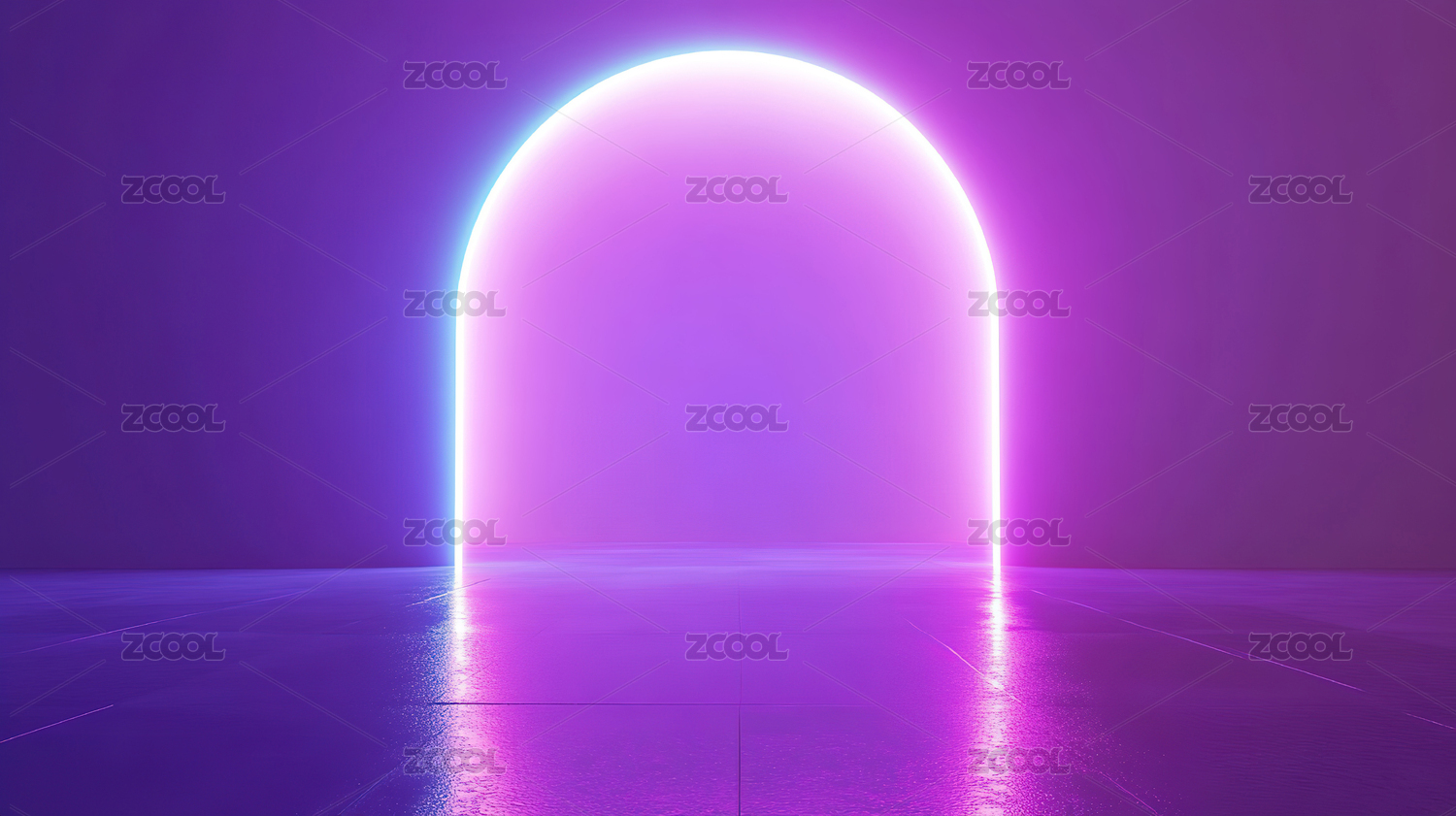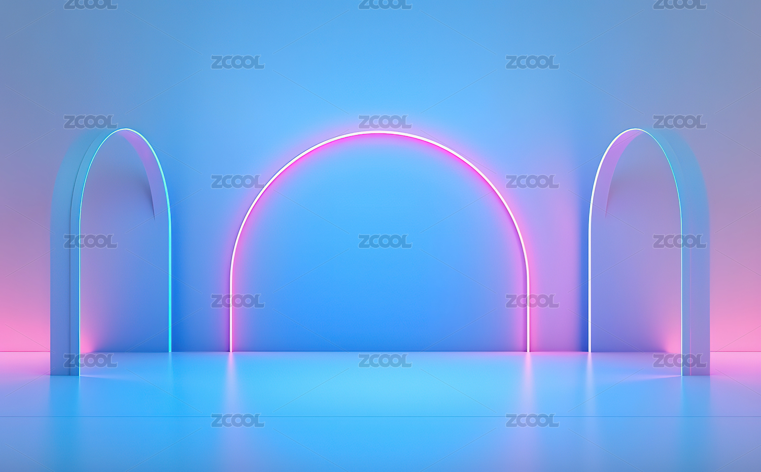 3D渲染科幻几何隧道霓虹灯线概念插图