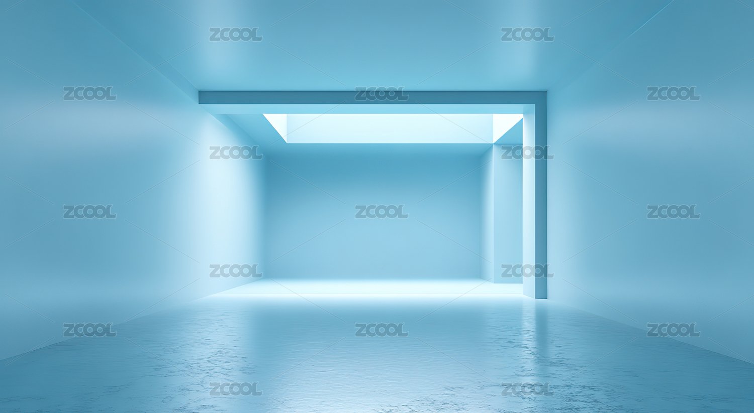 蓝色空旷房间天窗光照