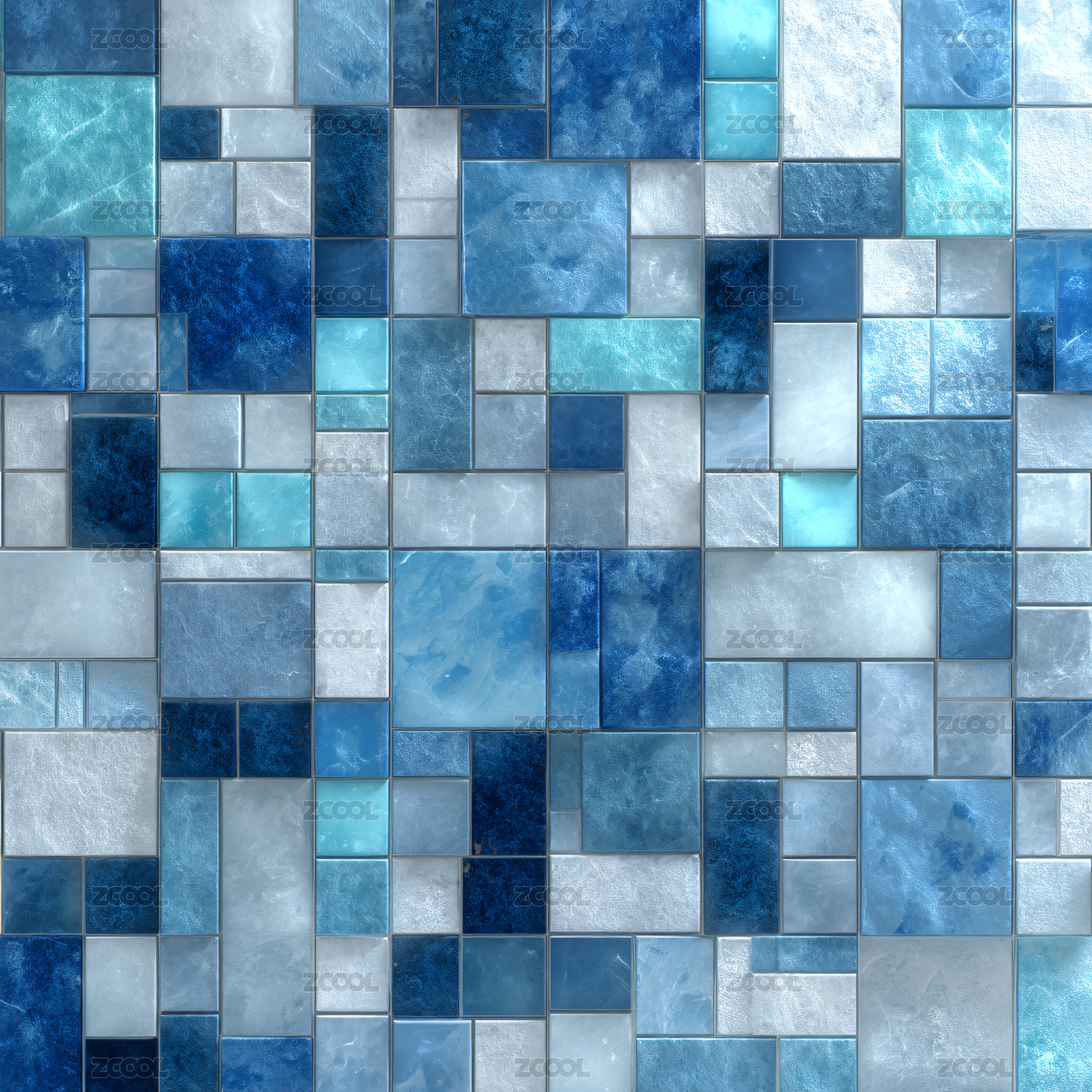 蓝色金属质感方块拼接图案