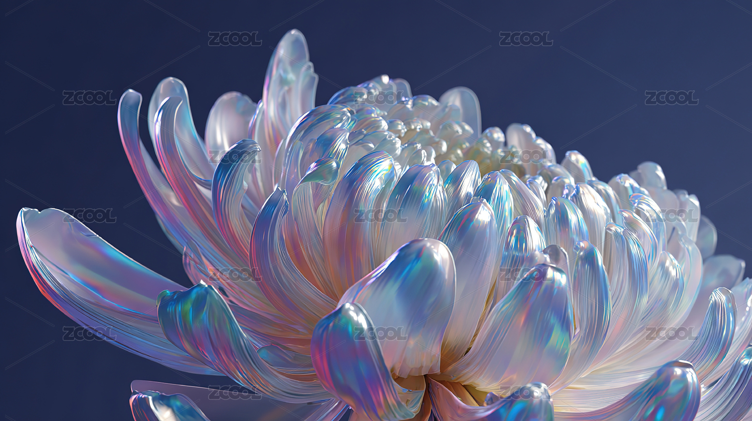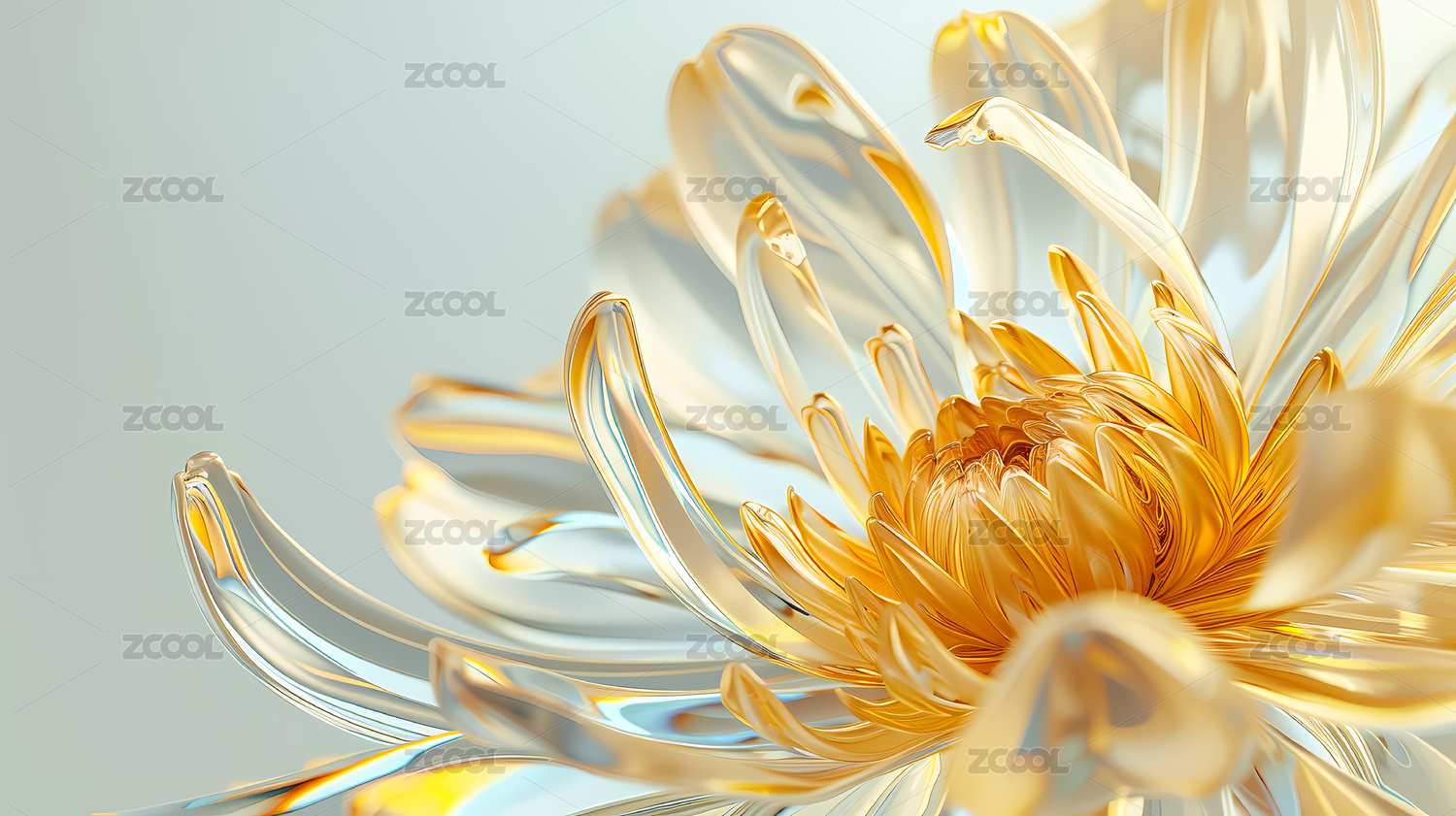 唯美梦幻盛开金色花蕊蓝色花朵3D立体插画