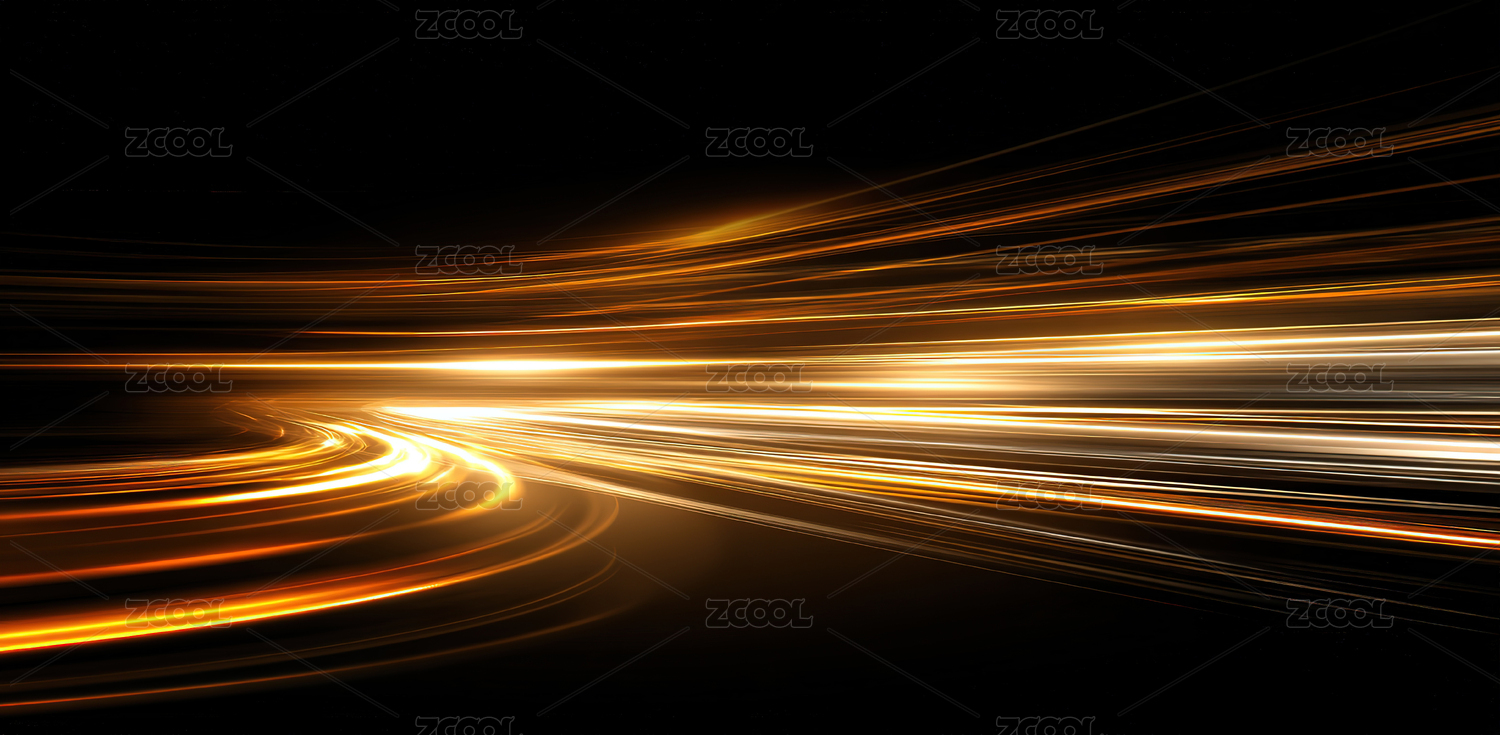 金色光流在黑暗中疾速穿梭的抽象动态画面