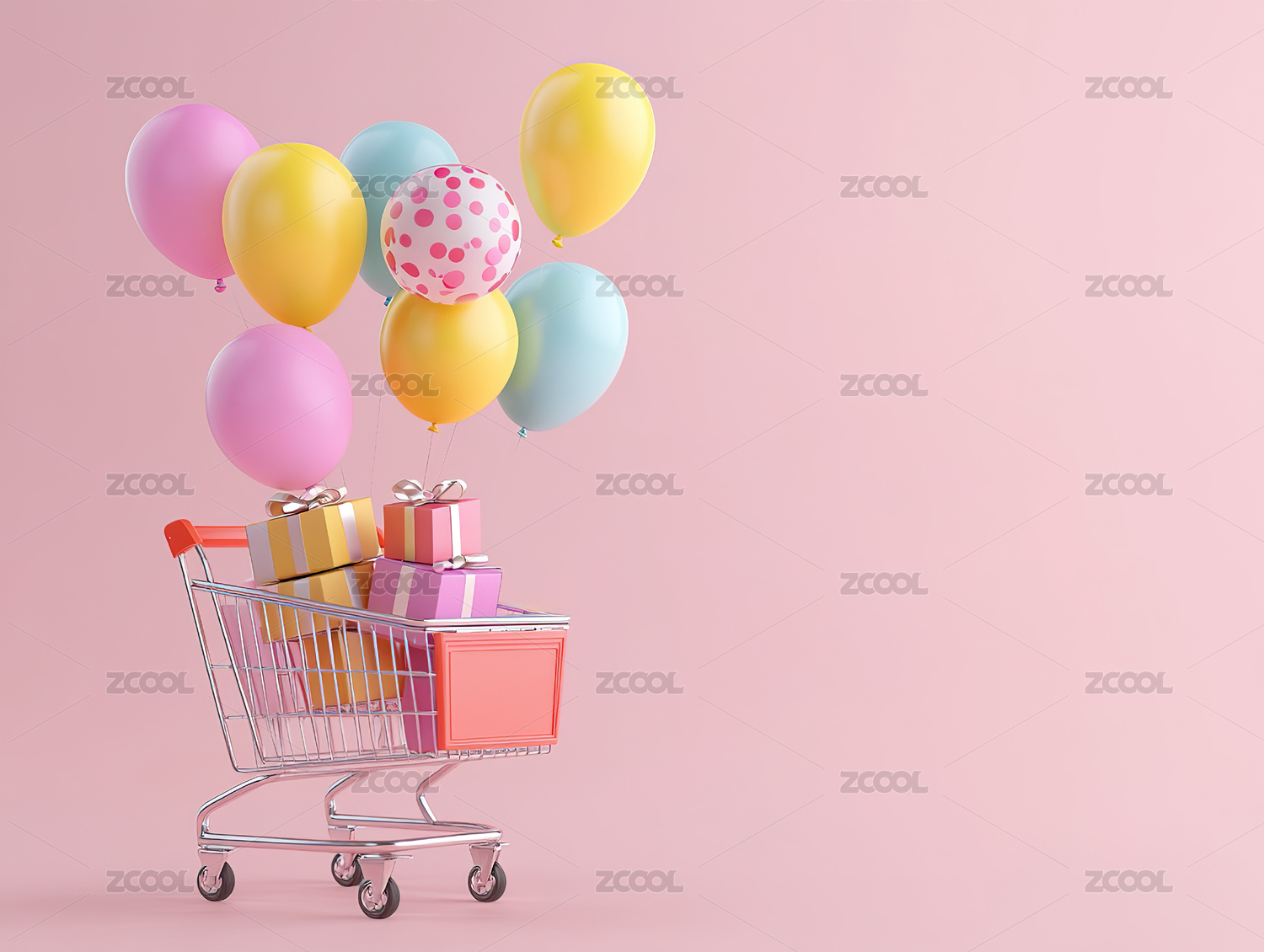 礼物,购物,购物车,气球,消费,购买,促销,AI数字艺术,零售,三维图形