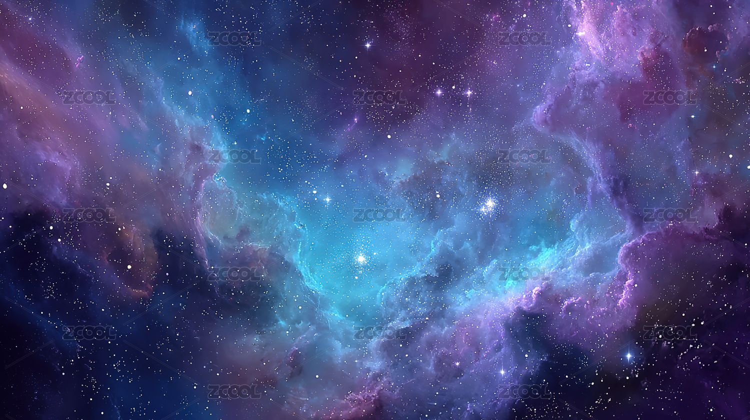 五颜六色的宇宙星云笼罩在太空尘埃中,天体