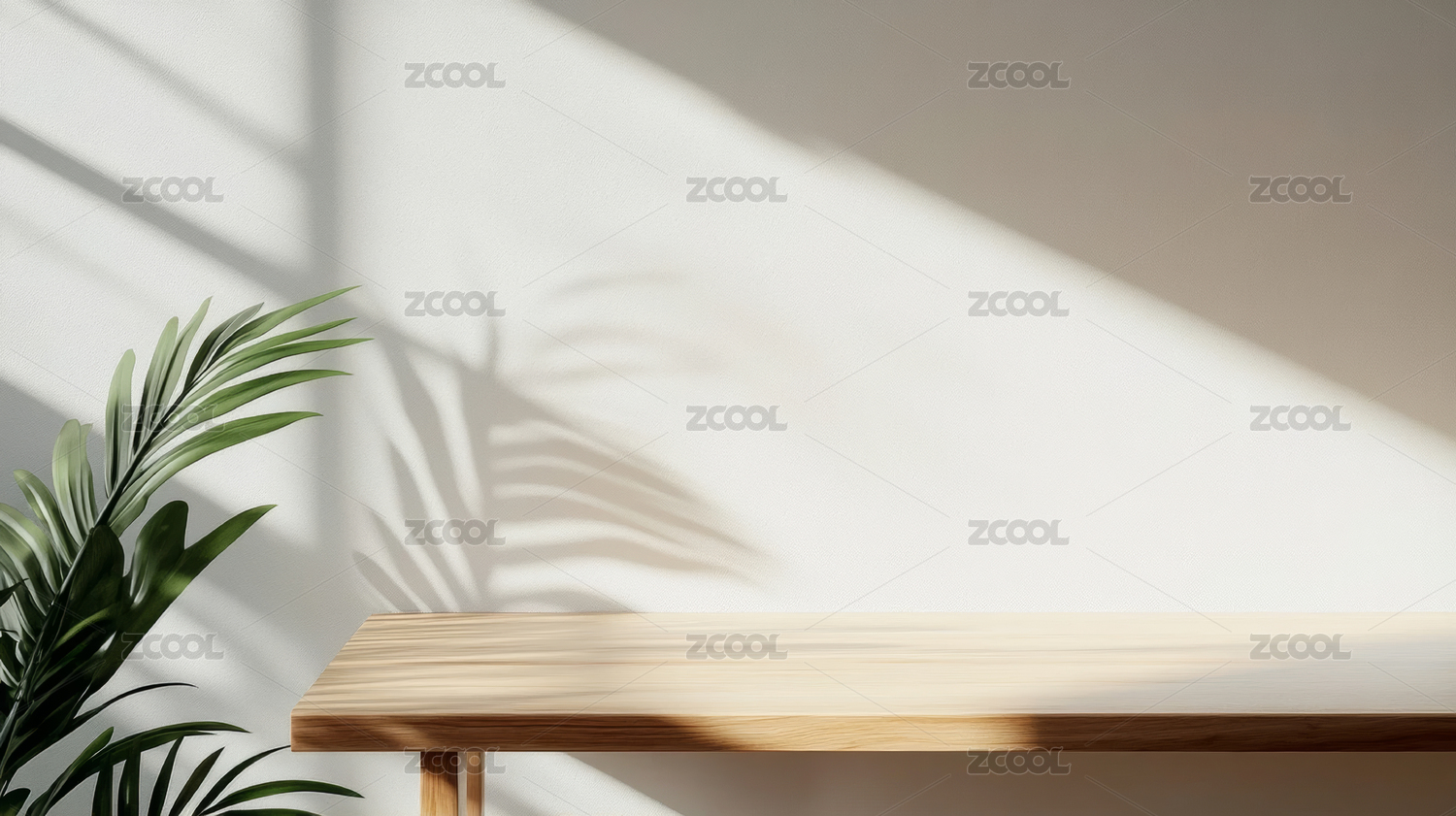 光影中的木桌与植物