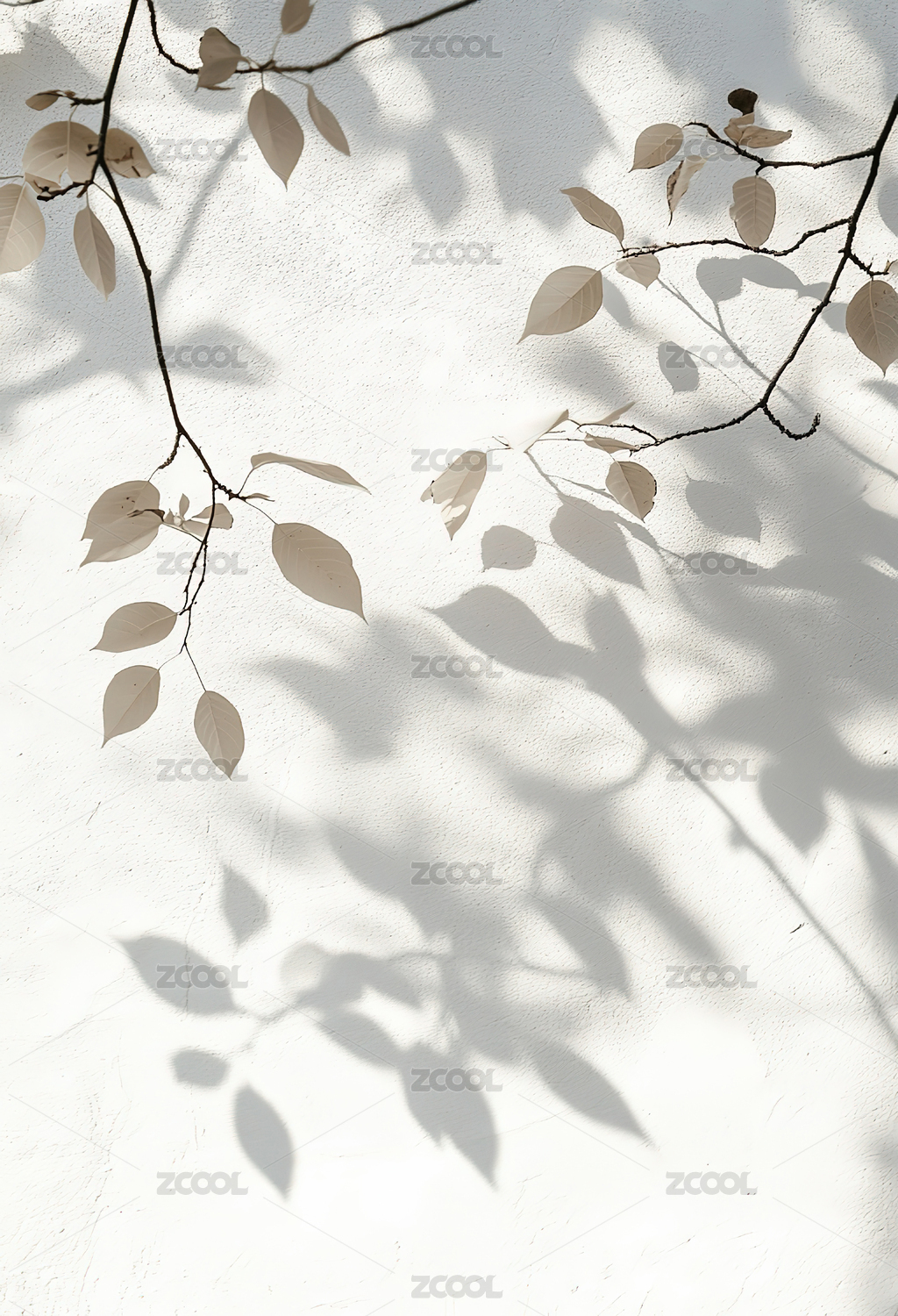 白色墙面上的树枝光影