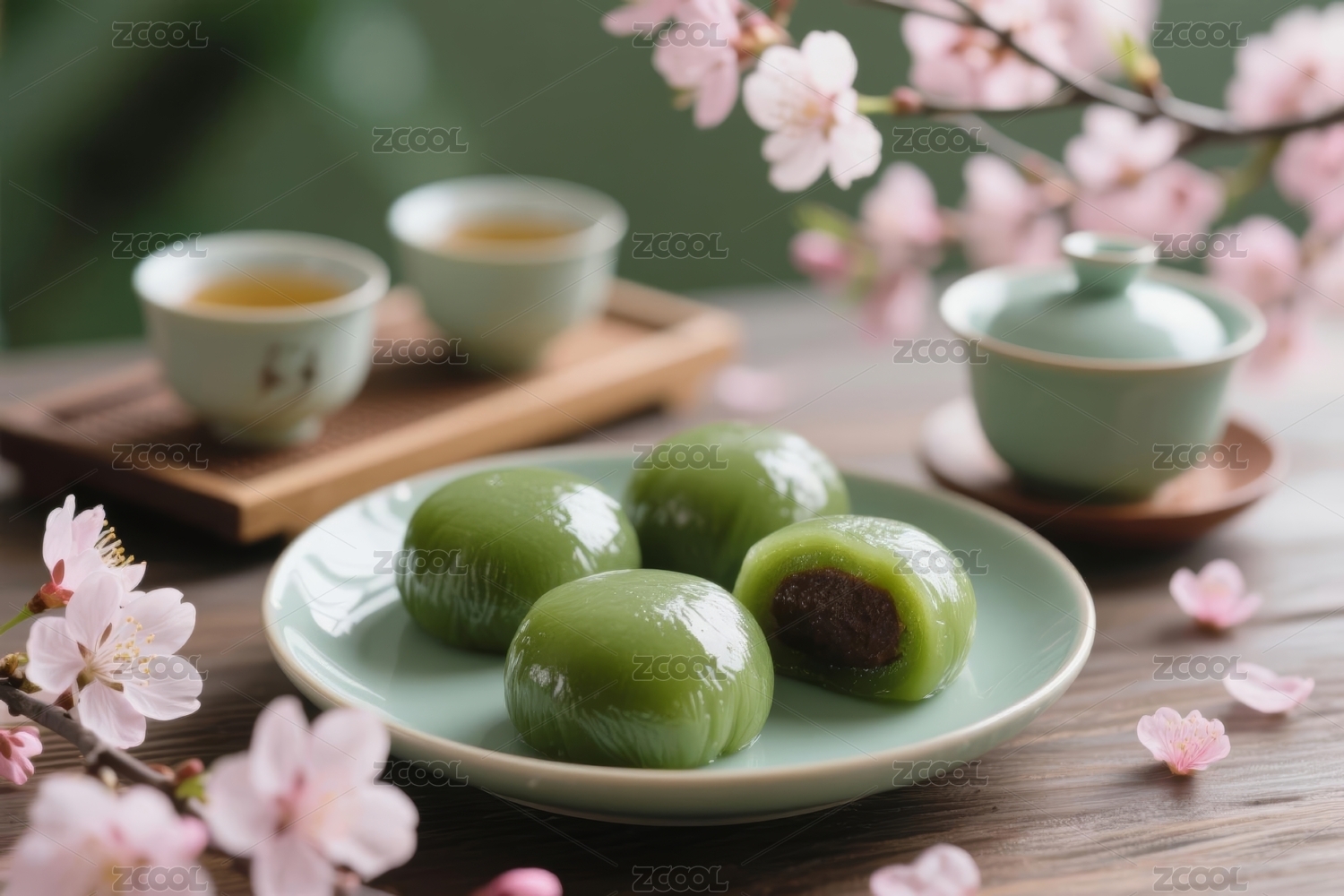 清明节时令美食青团特写绿色莫兰迪色系背景