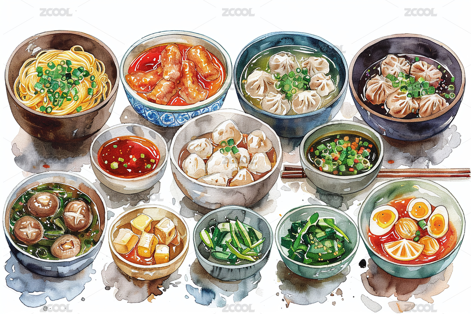 陕西特色美食凉皮肉夹馍泡馍 无缝拼接图案