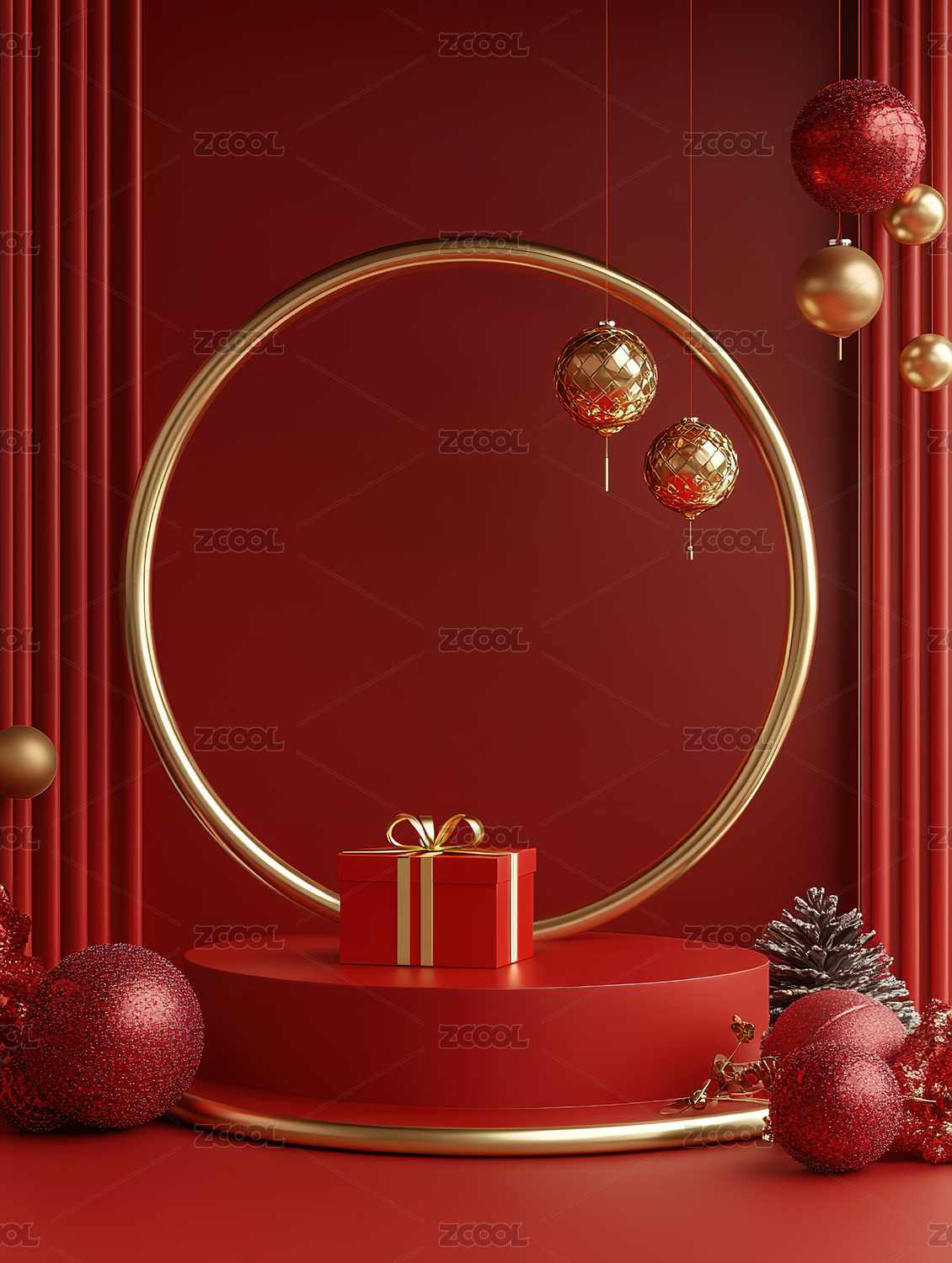 红色背景下的红色礼盒
