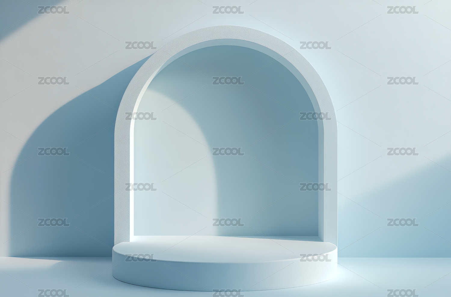 蓝色墙壁上的圆形建筑和圆形的圆形剧场