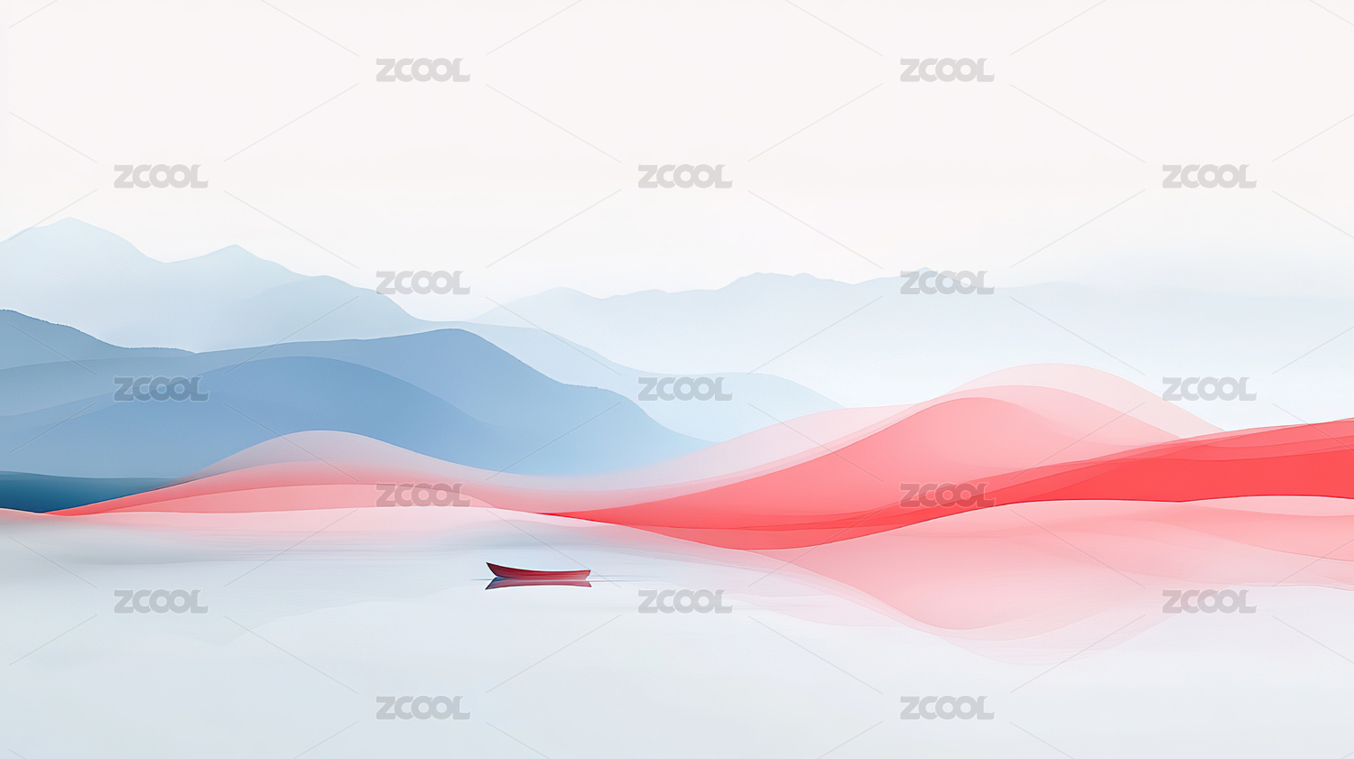 红山孤舟意境图