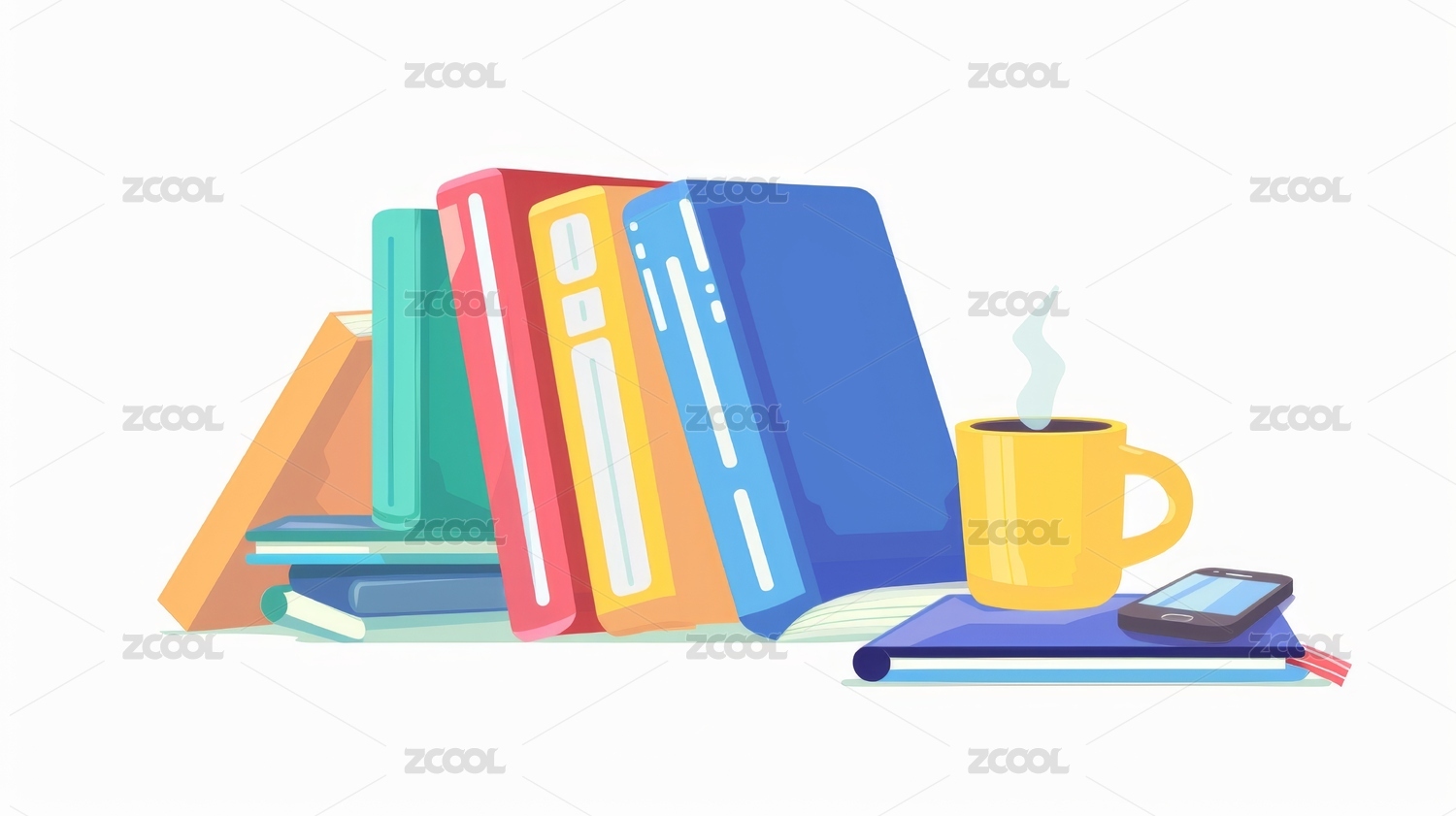 书籍手机咖啡杯教育商务扁平化卡通插画