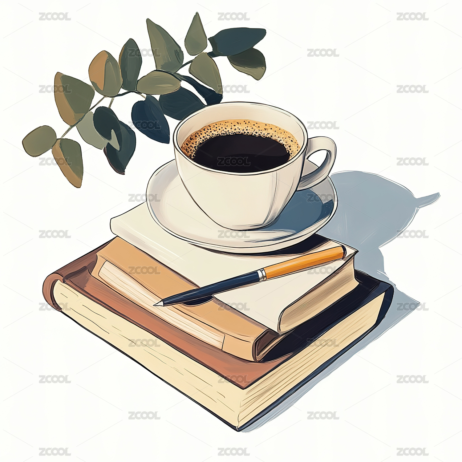 咖啡和书插画