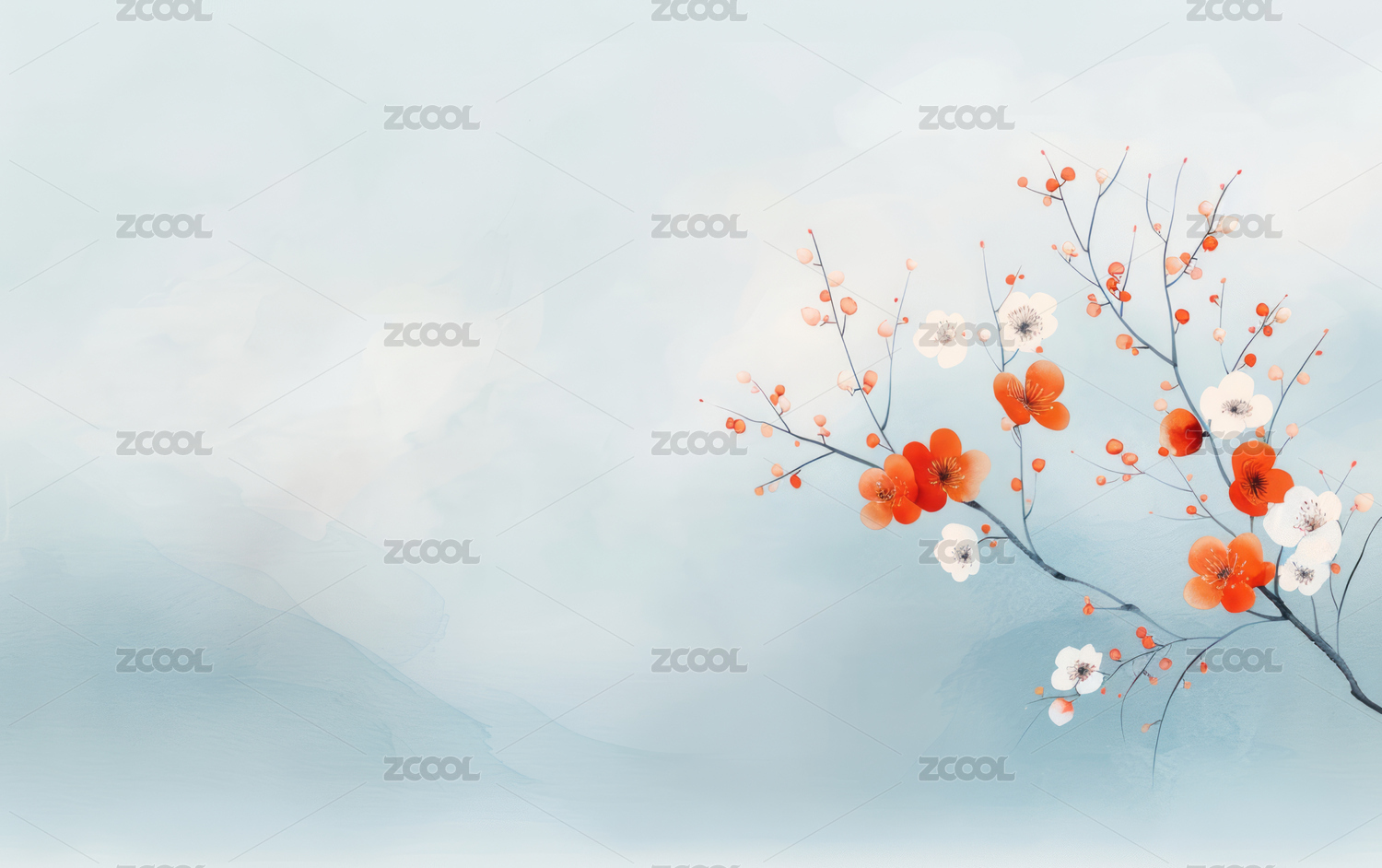 雪地中梅花盛开着-白色唯美卡通冬季插画