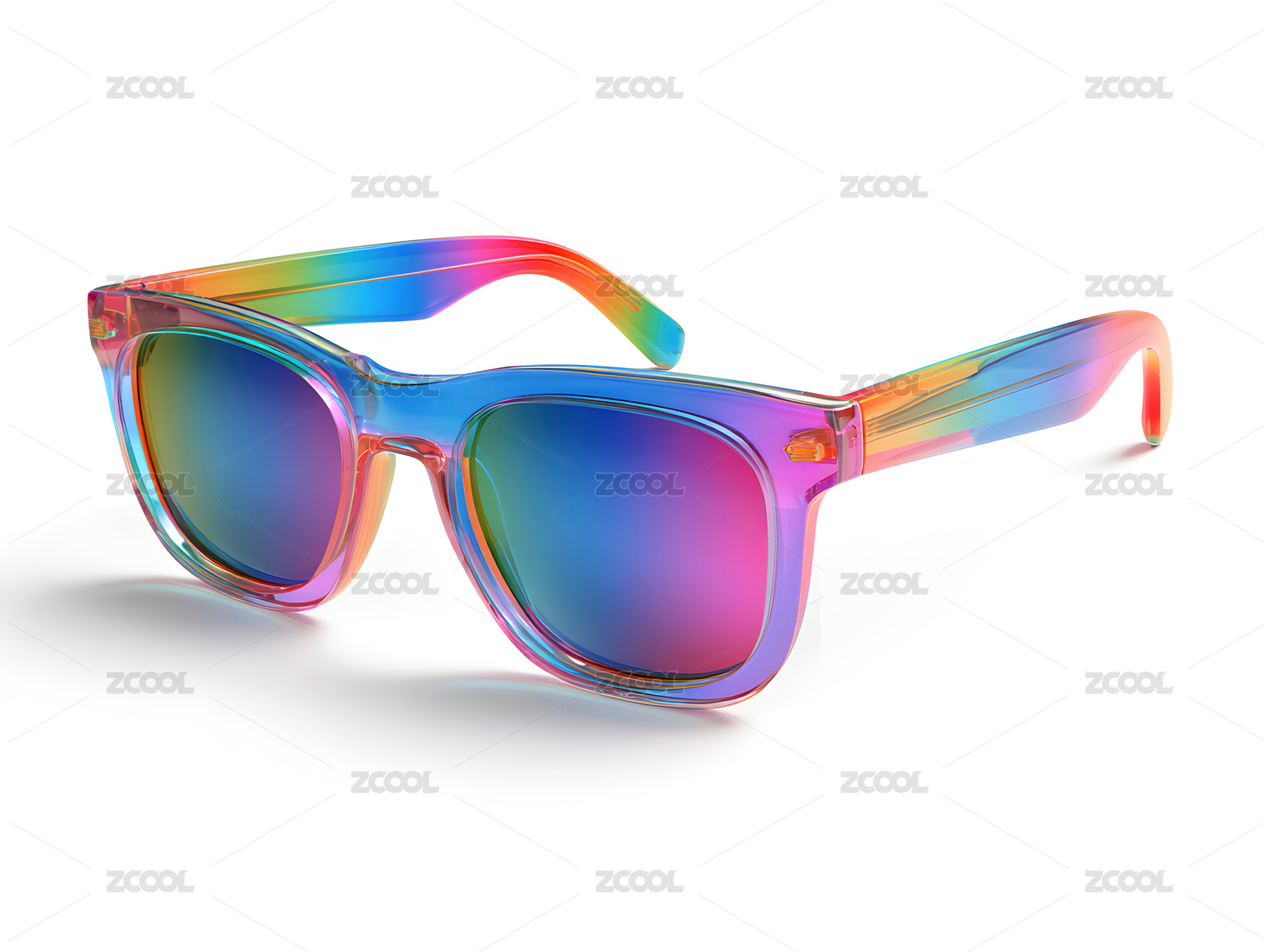 黑色桌面的时尚荧光色眼镜3D卡通立体插画