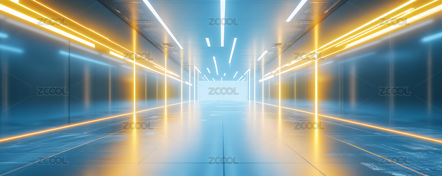 科技风霓虹灯隧道走廊室内人造空间