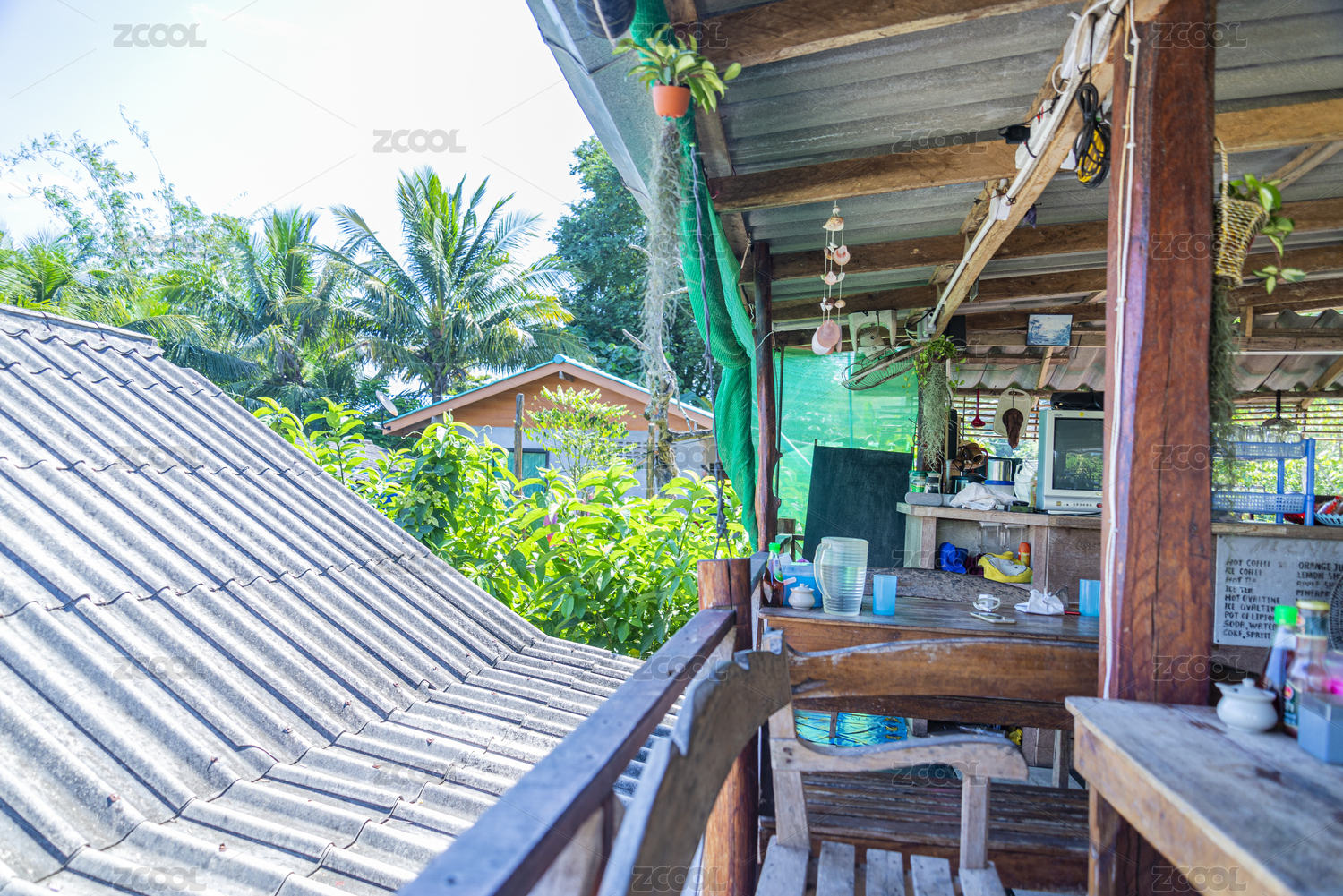 冬天早上的泰国甲米的兰塔岛木式民居建筑
