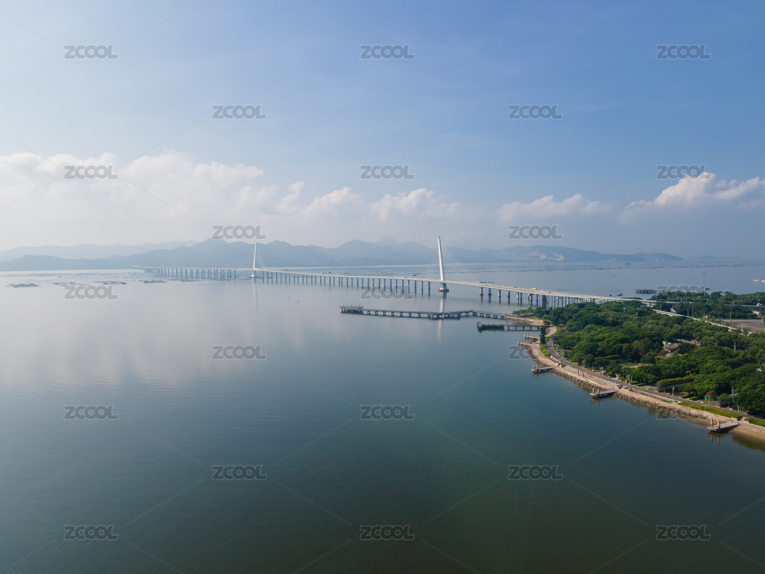 晴朗的早晨,航拍广东深圳湾大桥早晨风光