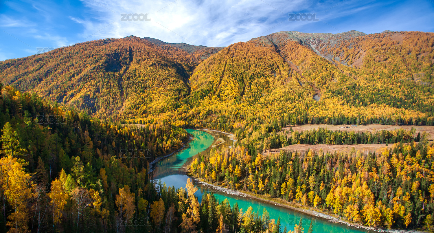 中国新疆喀纳斯风景区月亮湾秋色