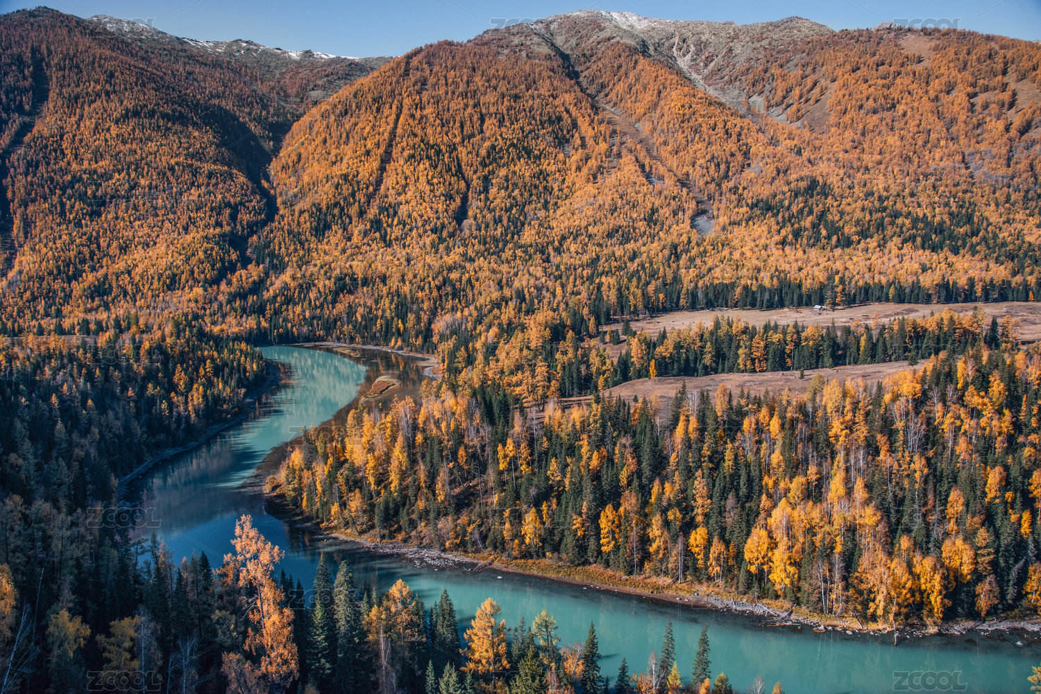 中国新疆喀纳斯月亮湾秋色
