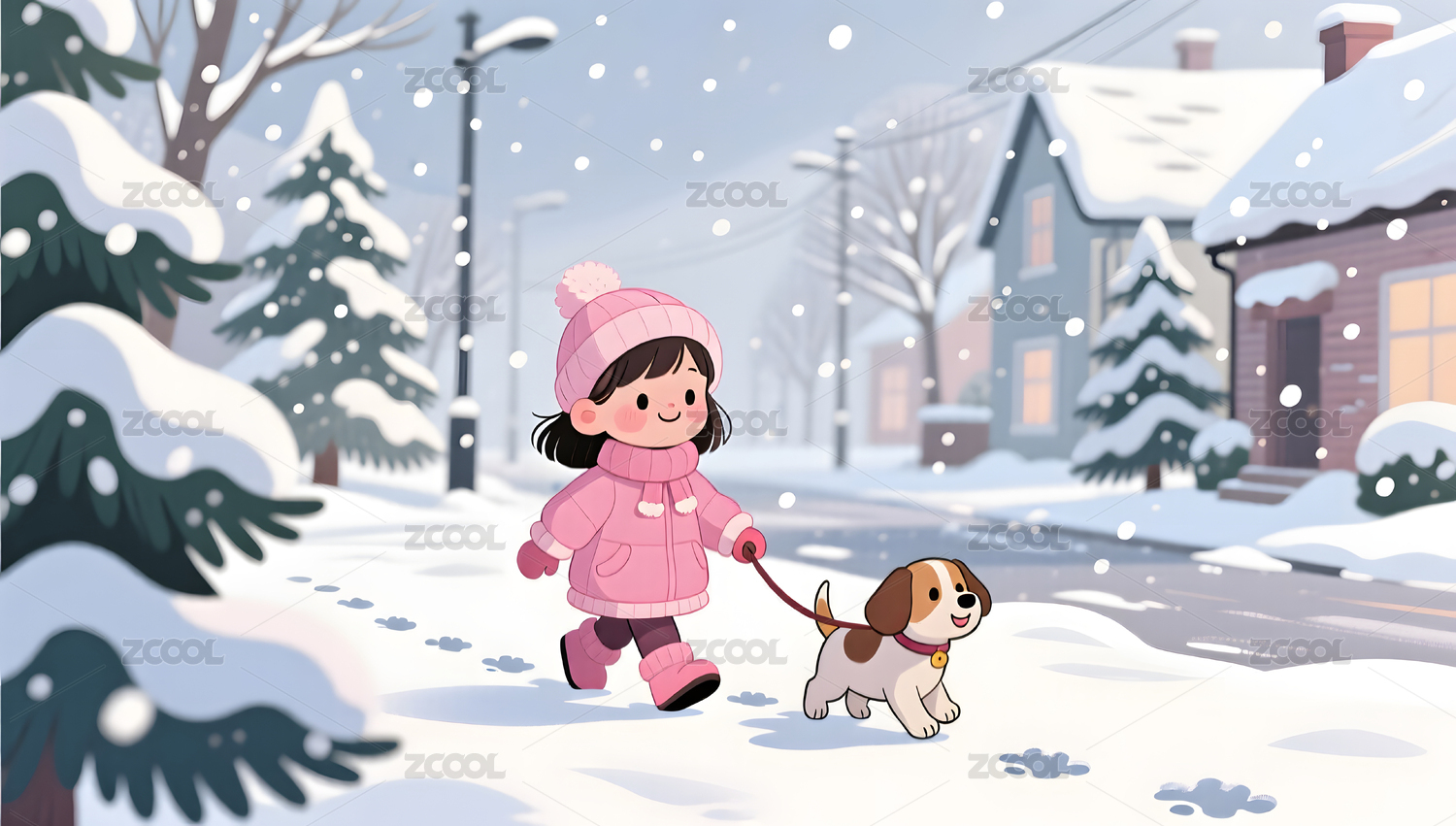 可爱,梦幻,小羊,紫色,初雪,堆雪人,打雪仗