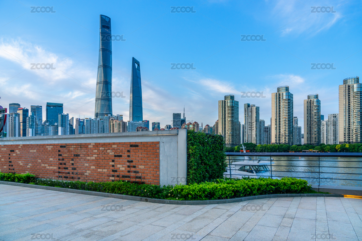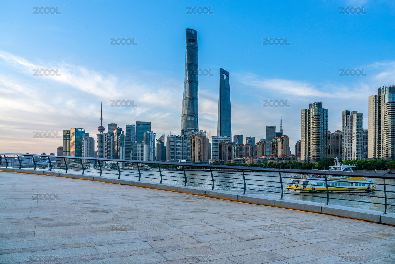 上海黄浦江边空旷无人的观光平台