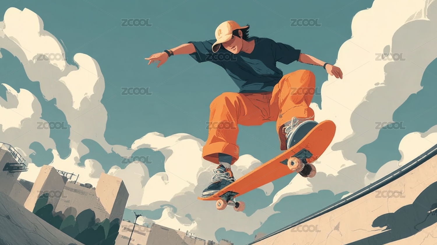滑板青年玩滑板潮流运动青春人物时尚插画
