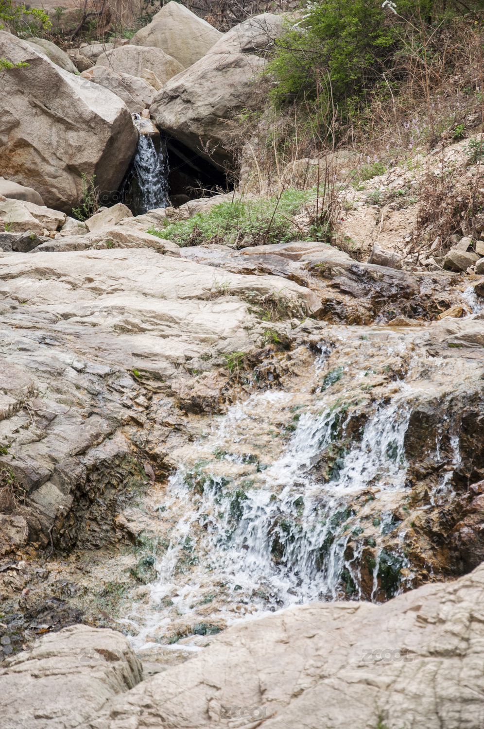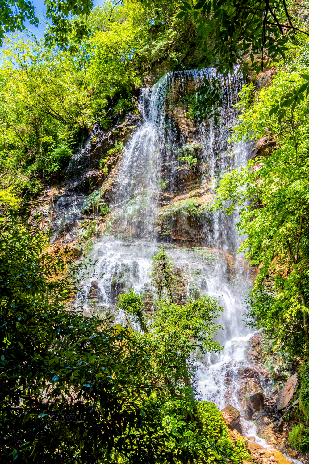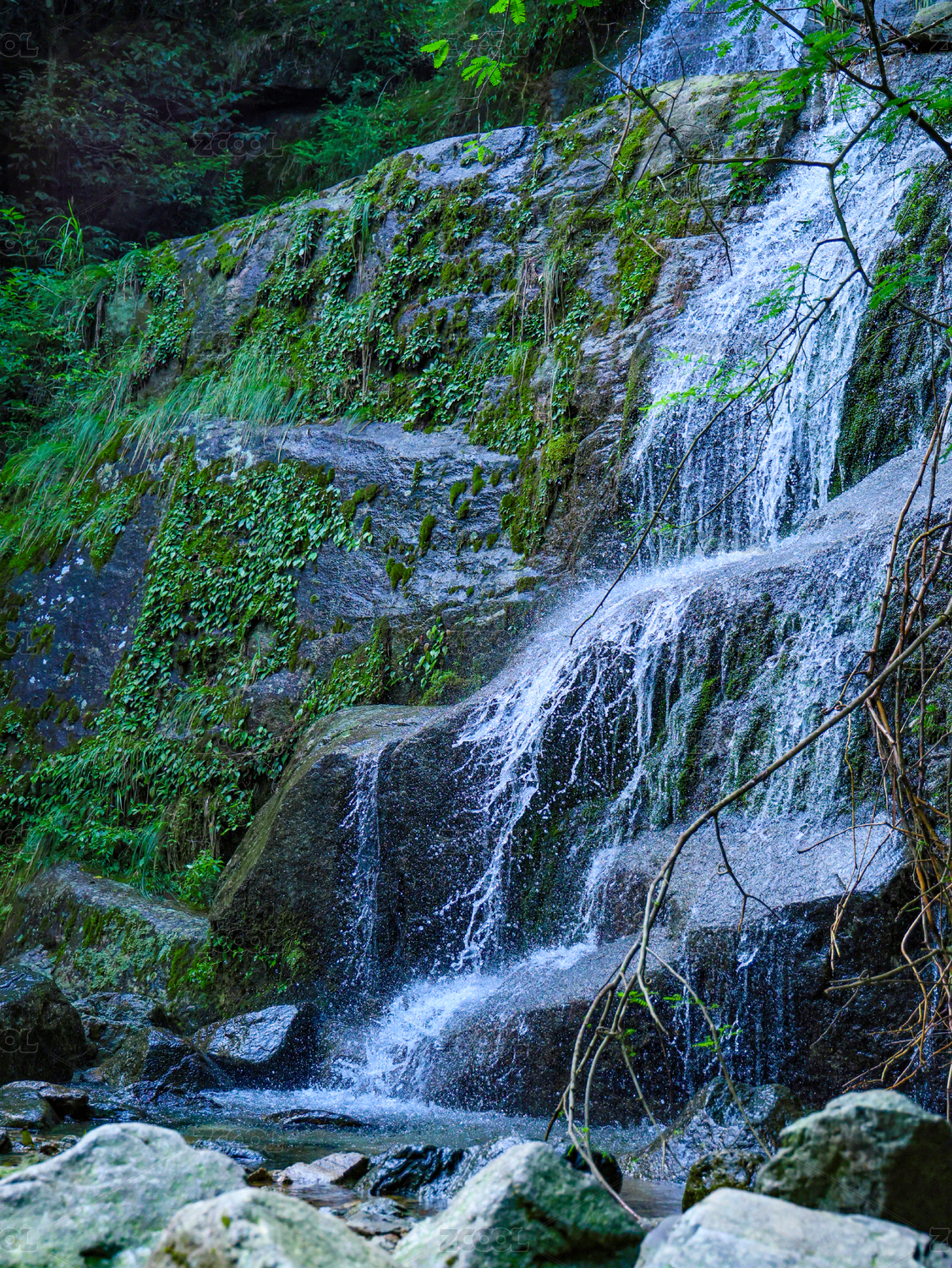 山区户外岩石上流淌的小瀑布,福建龙岩