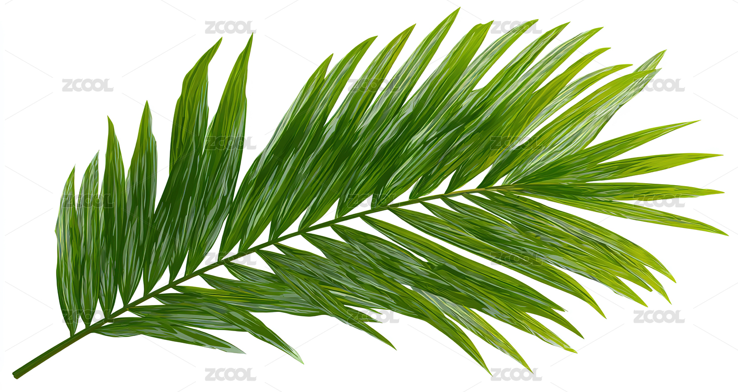 一片翠绿的棕榈叶,带有细长的小叶