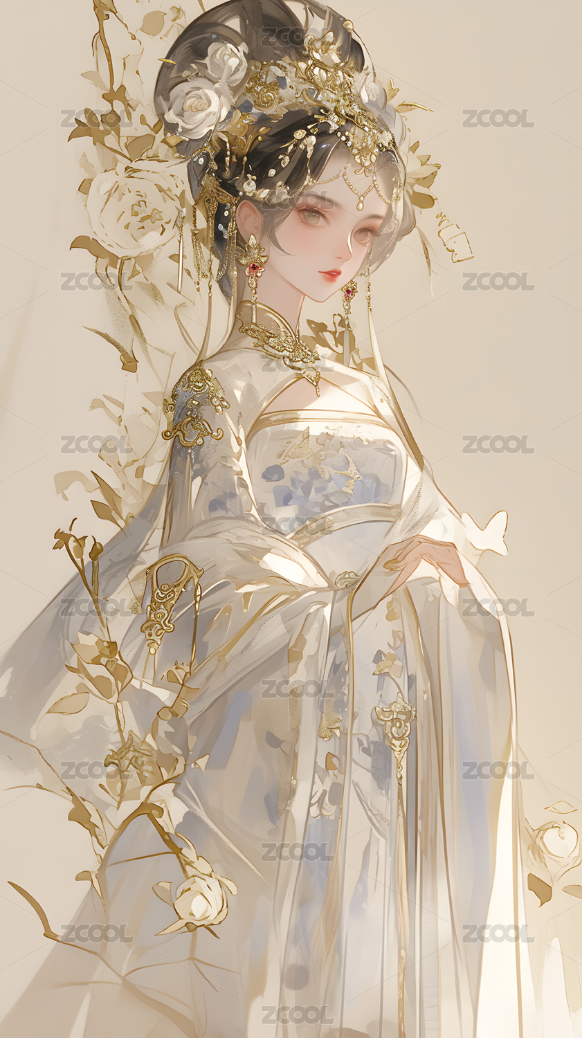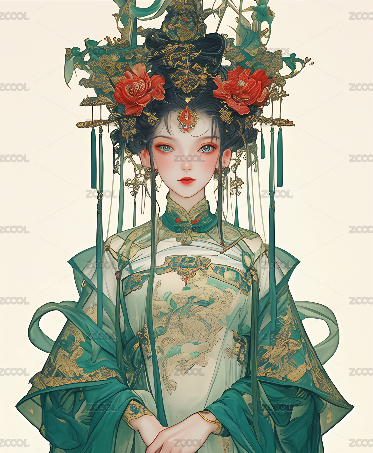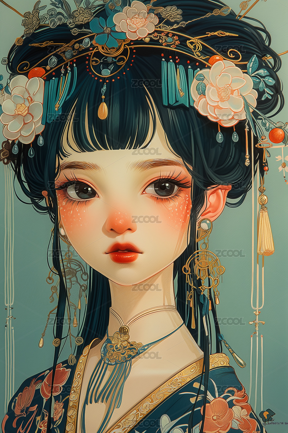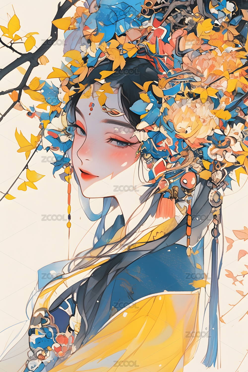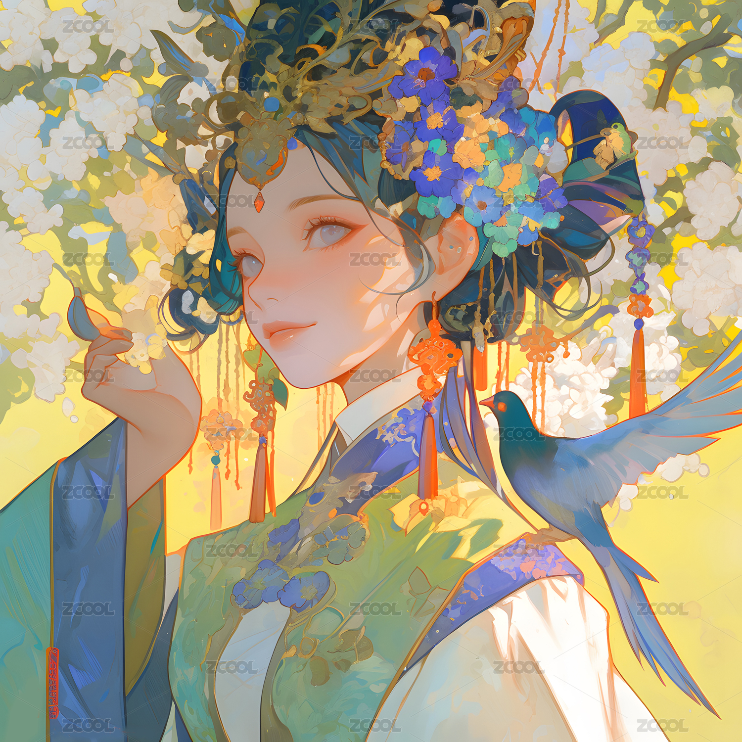 中国,中国的,传统的,青花瓷,风格,装饰,女孩,女人,美女,女士