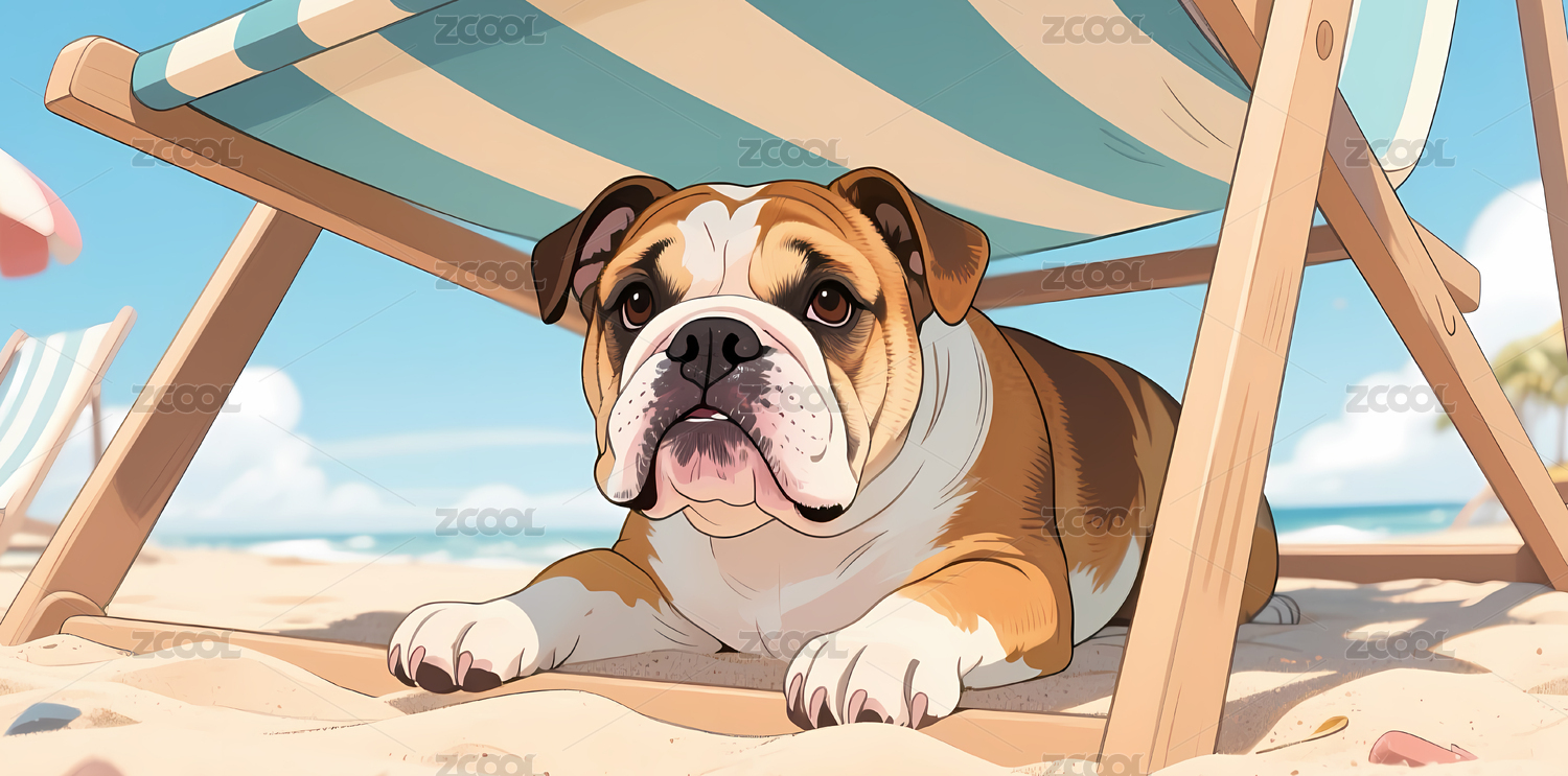 夕阳氛围享受游艇巡游的悠闲斗牛犬