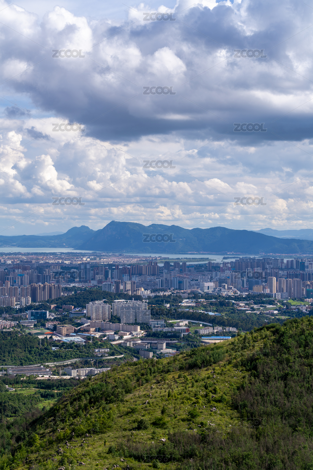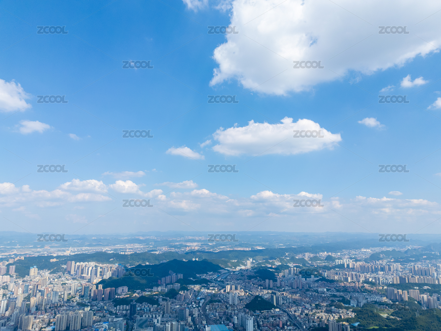 中国贵阳黔灵山俯瞰贵阳城市天际线风光