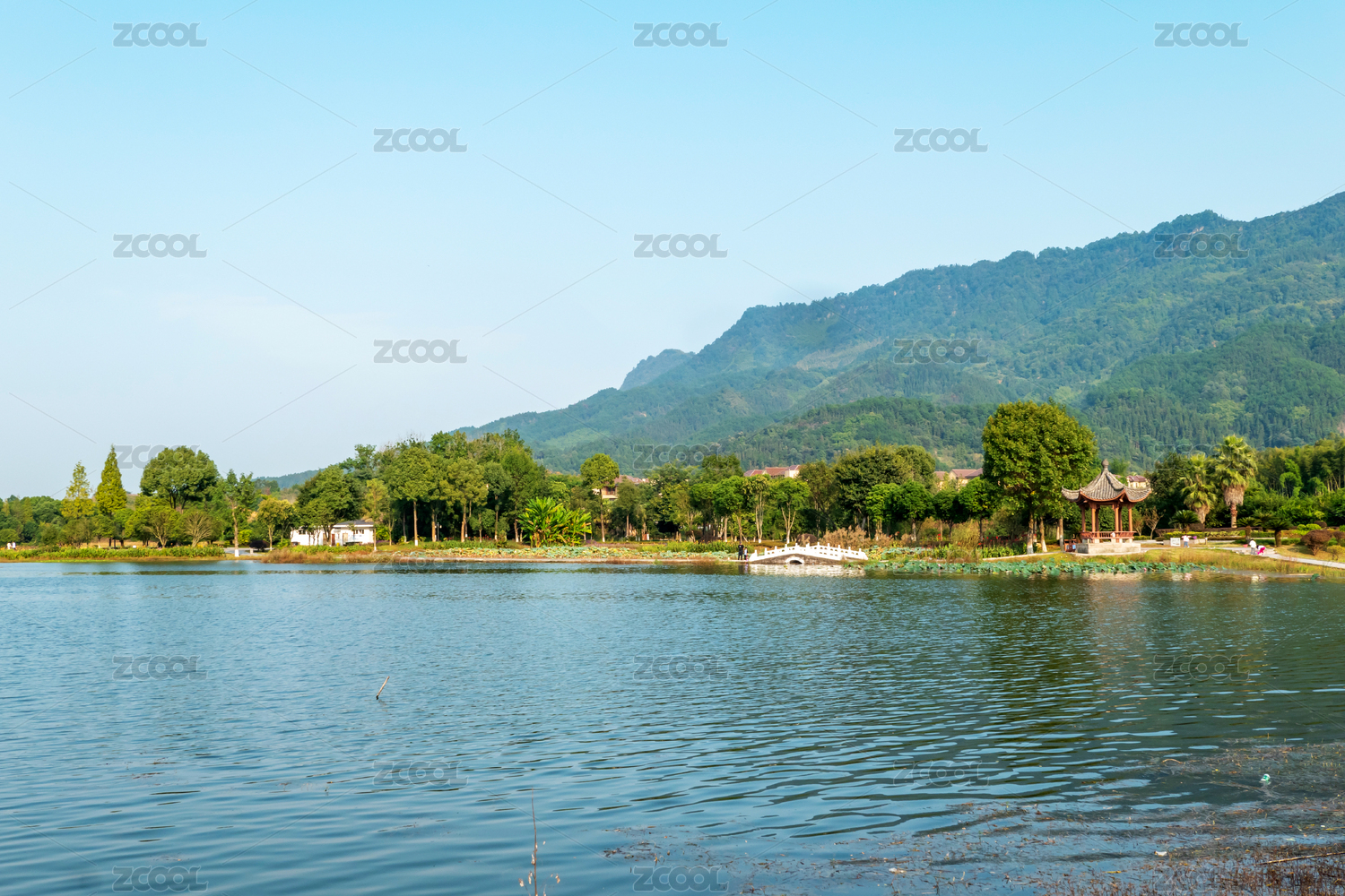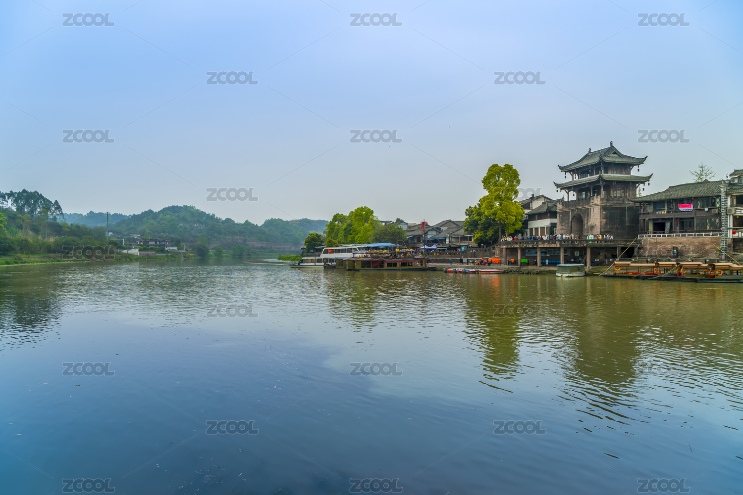 塔式天后宫建筑侧面及前面的荷塘,福建永定