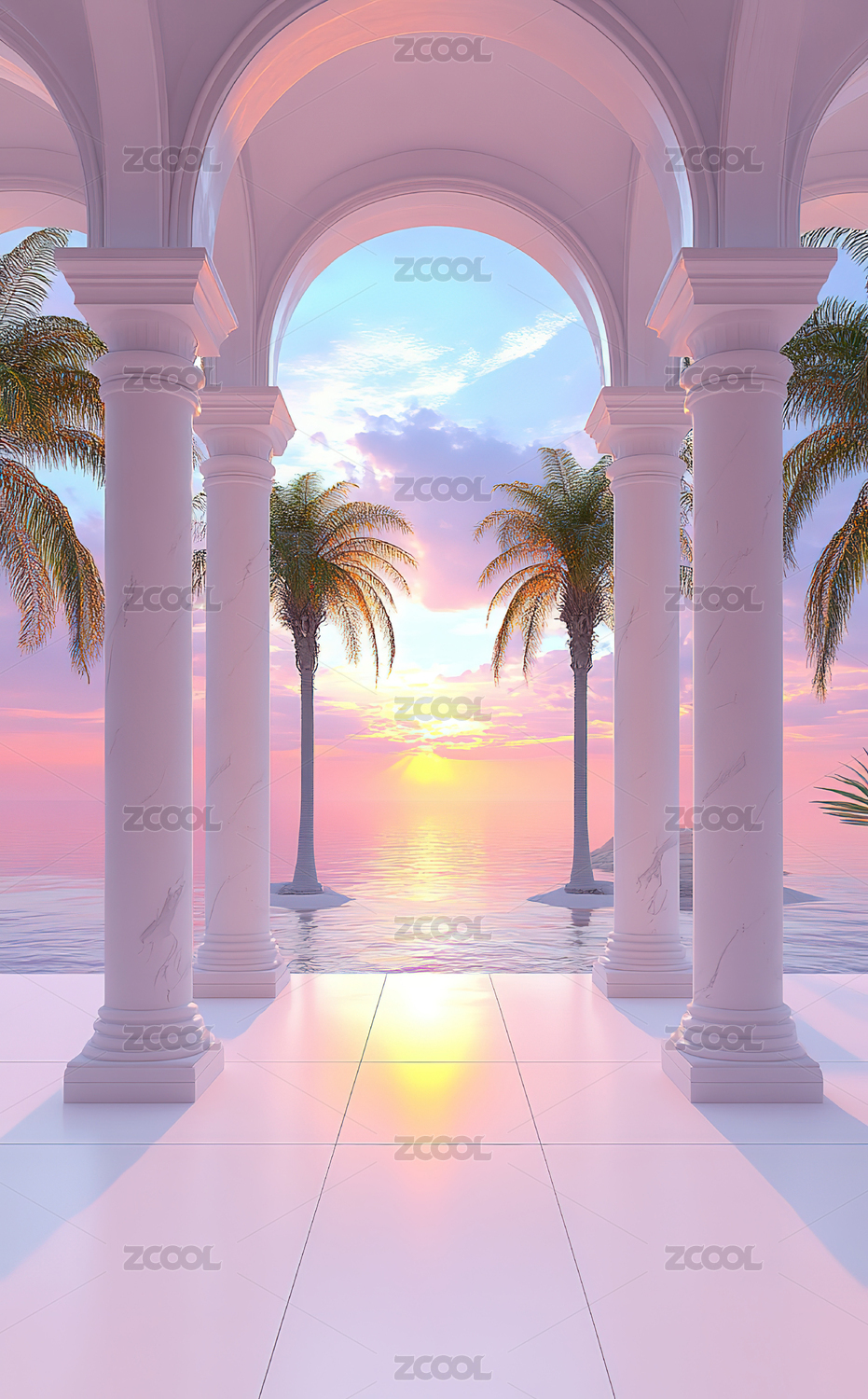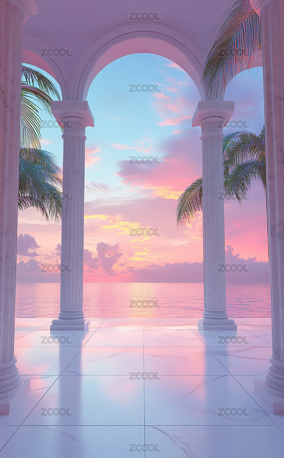 粉色天空空间大海建筑风景