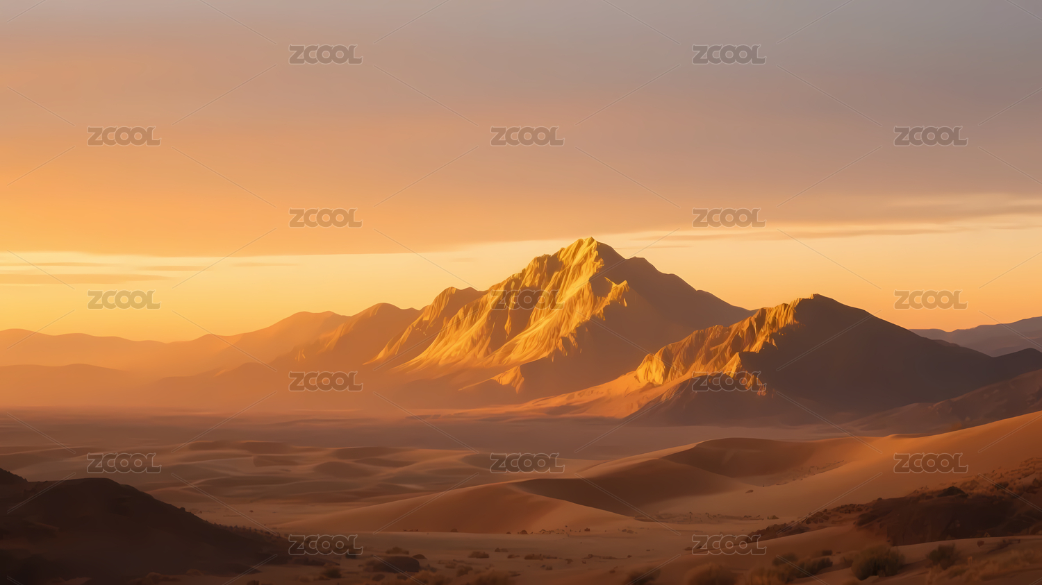 宁静沙漠夕阳山峰