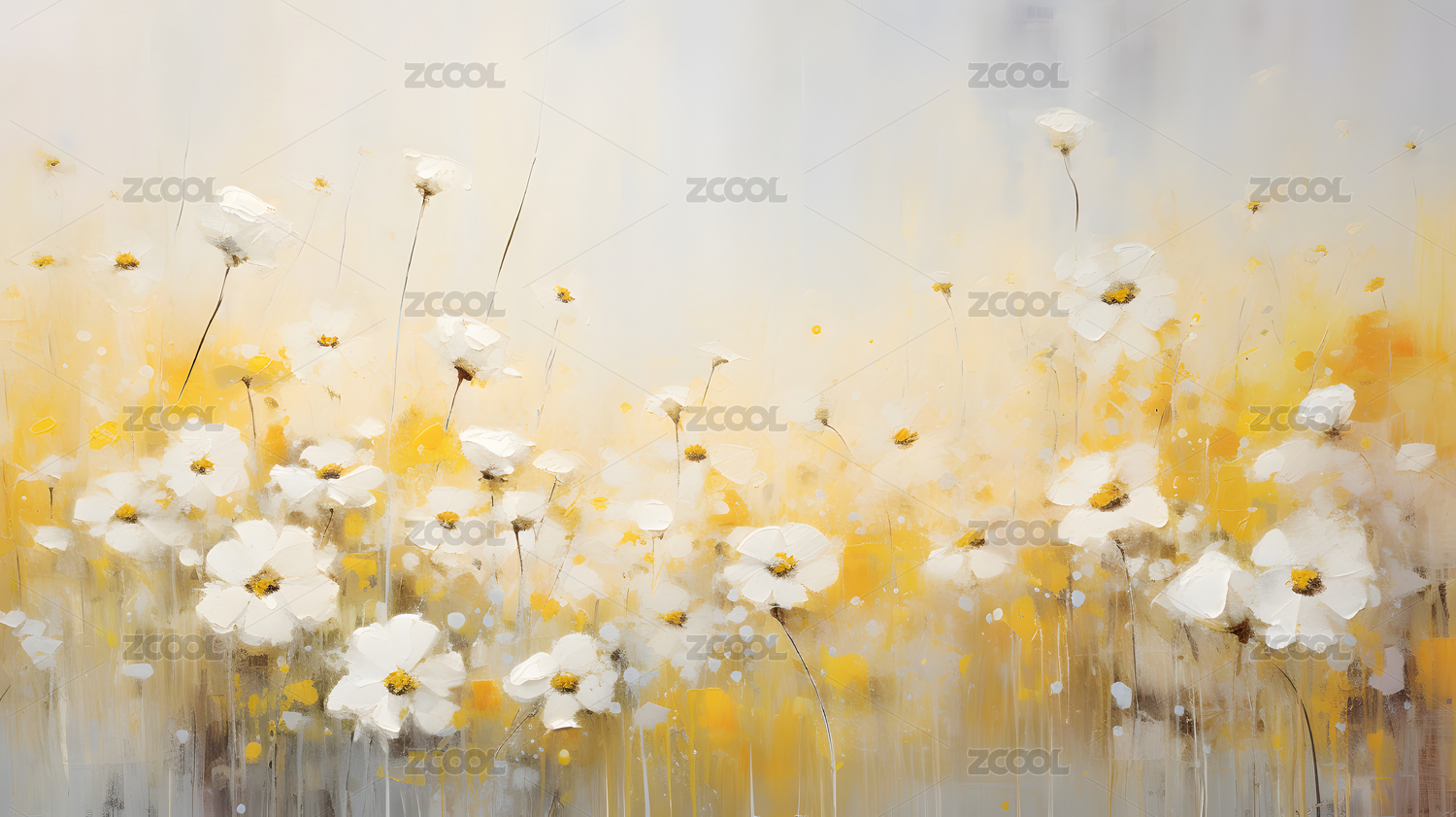 厚涂粗笔触印象派花朵小白花背景海报装饰画