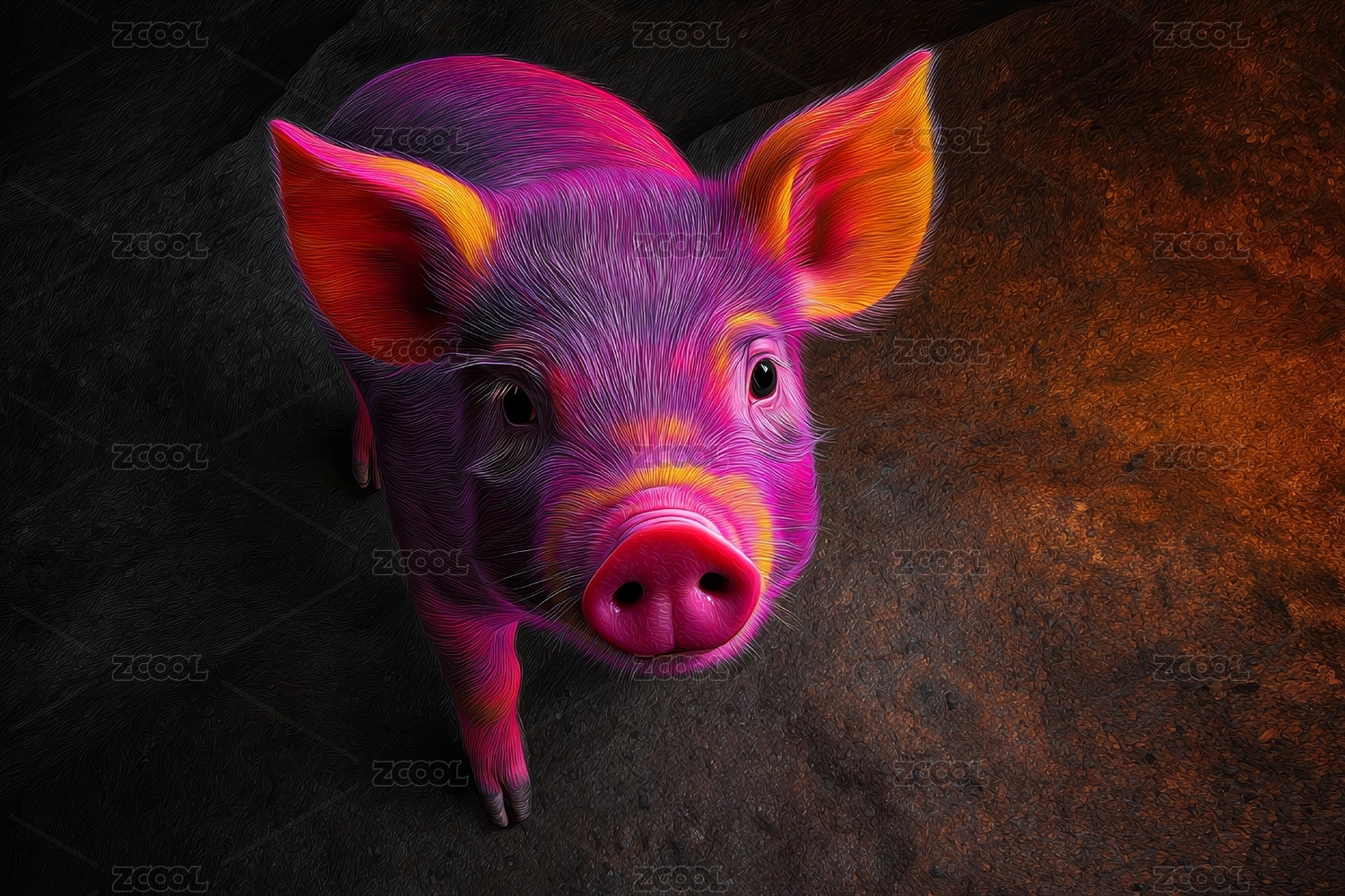 红光下的卡通小猪